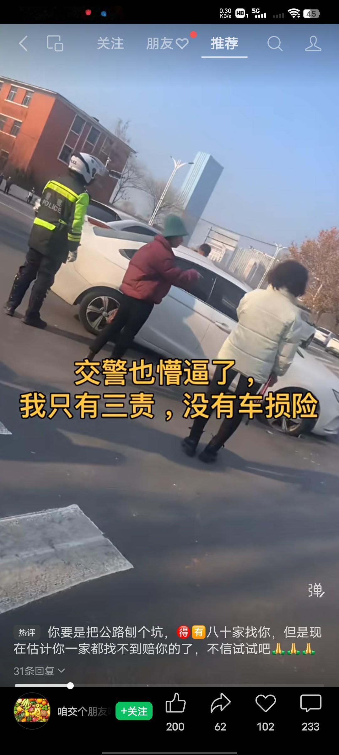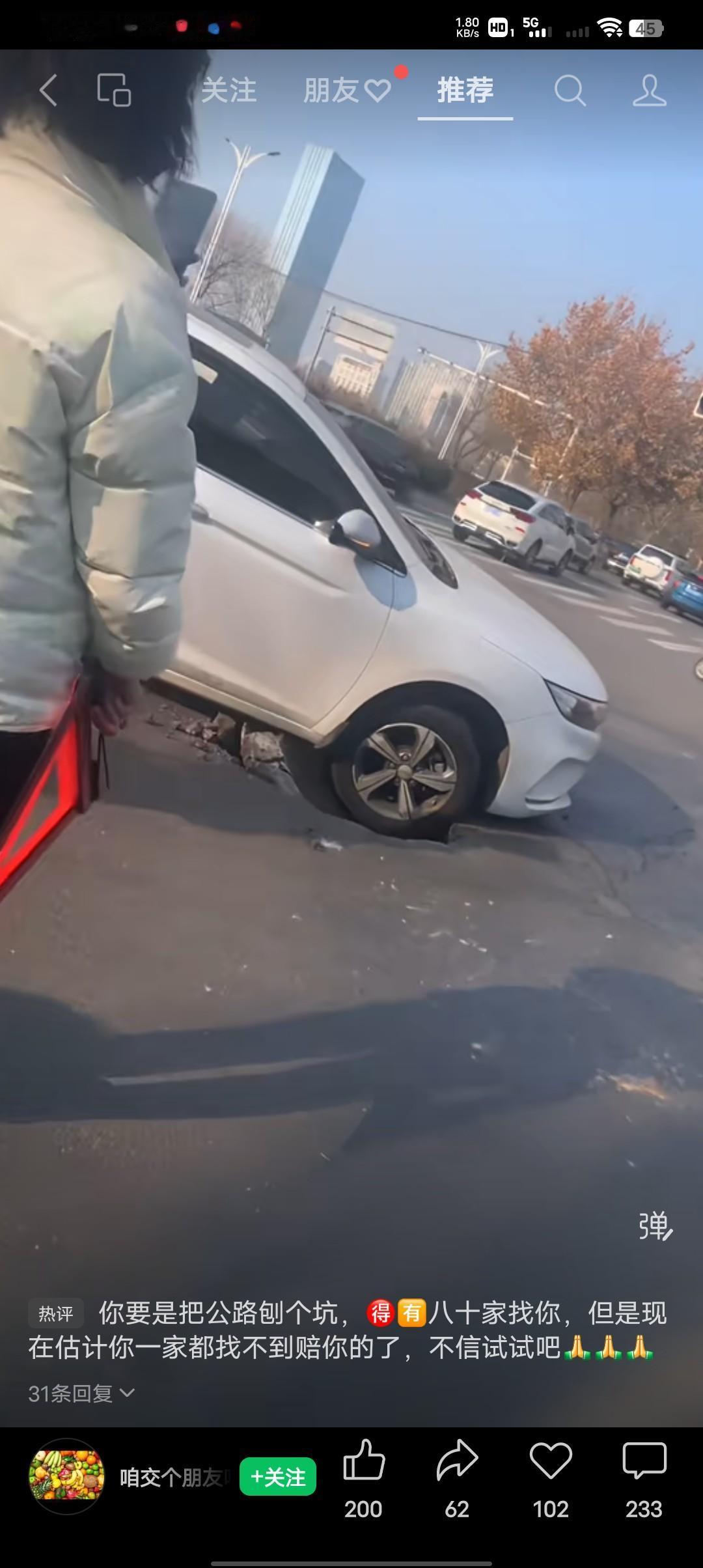 车子正常行驶在路上,路却被车子压了一个坑,你说到底是谁的责任? 交警也懵逼了,我只有三责,没有车损险,有人说你在路上刨个坑的80家找你,但是估计现在你一家都找不到谁陪你? 有人说,你找路政啊,像这样的事故,车主正常交纳着税费行驶在合法的路上,出了问题必须有路政交通等管理部门和排污部门赔偿车主的一切费用,还有说你拉倒吧!你找路政,人家肯定说你的车肯定是超载了,要不怎么给人家的路给压坏了呢,路政还得找你赔偿修路钱呢。 这样的事故,到底谁该负责?我想这时候各个部门都应该躲得远远的了吧,是啊,谁会找麻烦呢,还要赔钱,不过有些事是躲不了的,只要我们懂得怎样守护自己合法的权益。