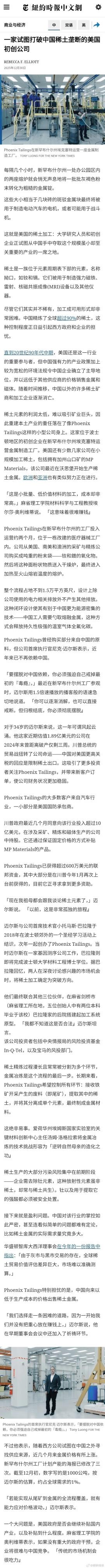 【一家试图打破中国稀土垄断的美国初创公司】