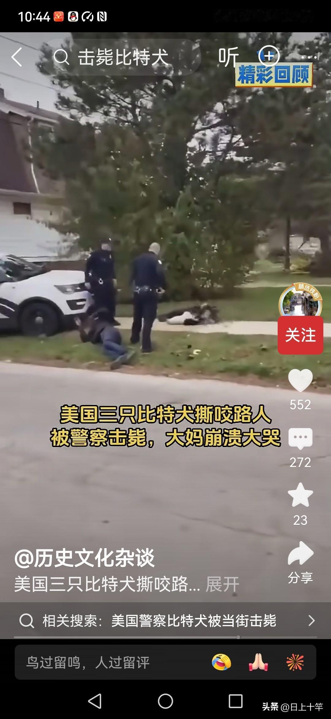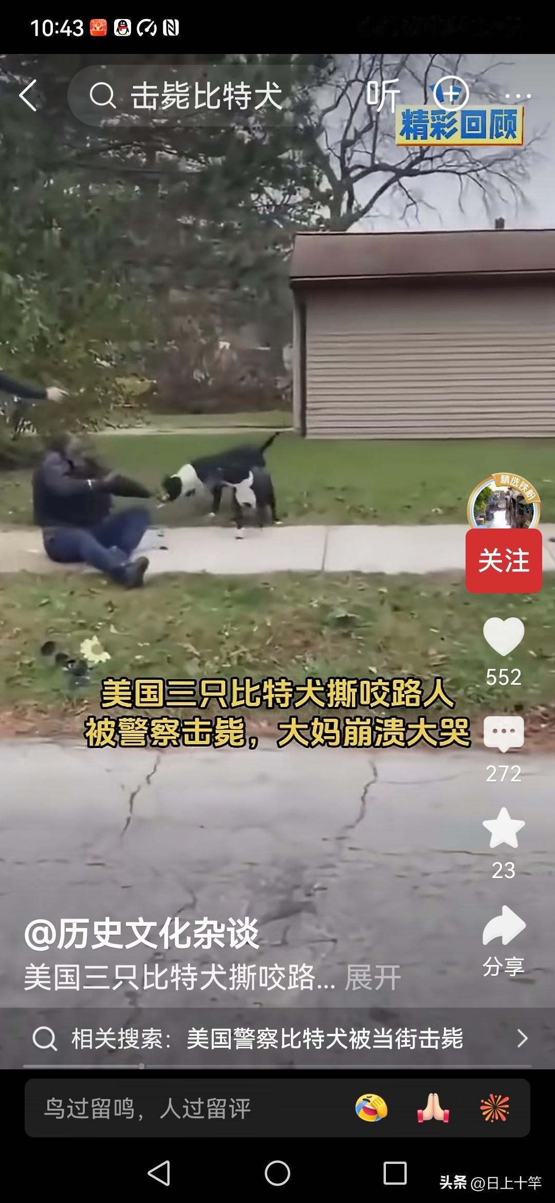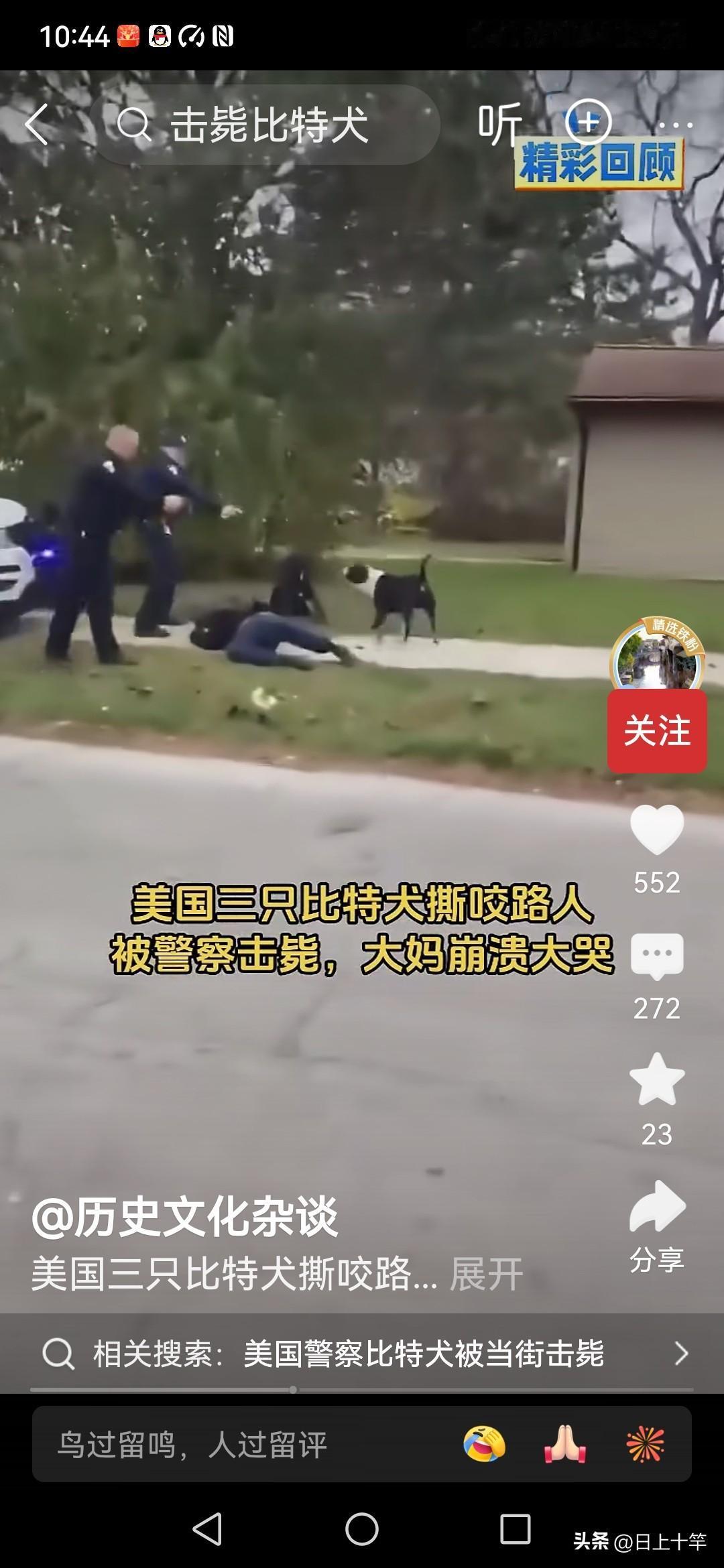 美国虽然有些严格的动物保护法,面对动物伤人事件,还是很干脆的,直接动枪!这是美国街头,三只比特犬撕咬路人,被警察当场击毙的画面! 很奇怪的是,美国是世界上饲养比特犬这类烈性犬最多的国家,据统计,在全美大概有450万只比特犬,而在美国近数十年历史中,比特犬咬死295人,伤害5507人,远超其他犬类。 美国人为什么这么喜欢养烈性犬,还是深受美国主流文化影视作品影响的,因为比特犬强健的肌肉和勇猛的形象,美国人觉得比特犬代表强大守护者和硬汉的符号,所以很多人饲养! 在中国是被很多城市都明令禁止饲养的!这也是典型的中美差异!