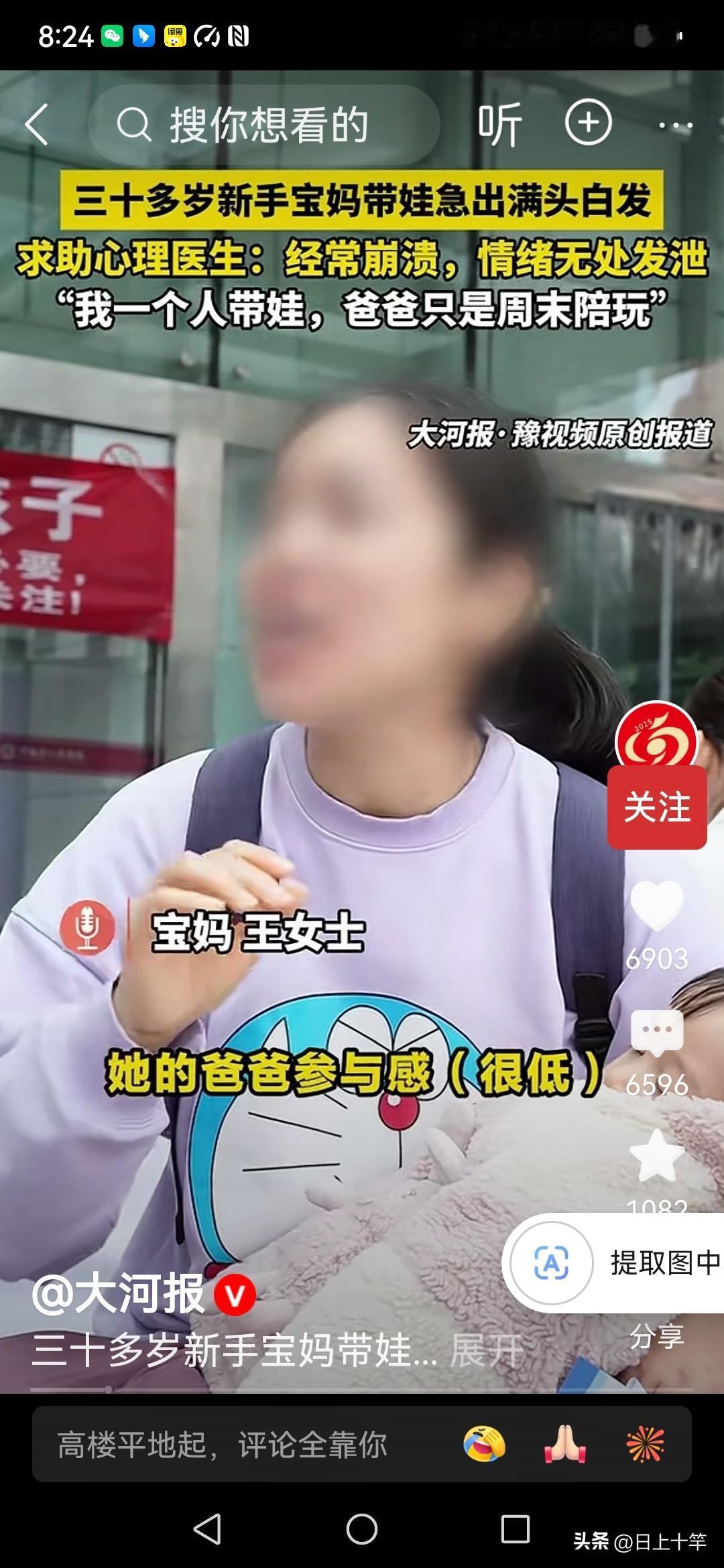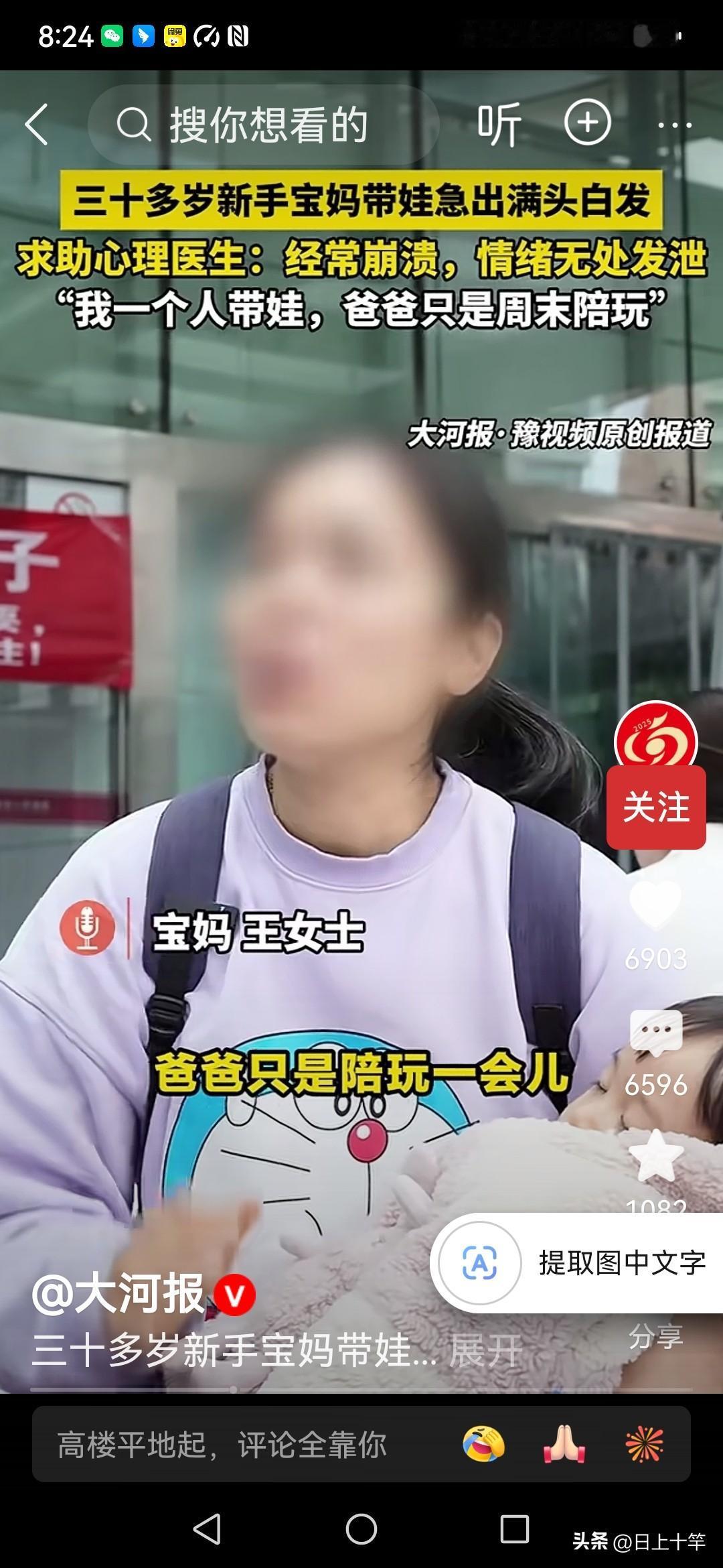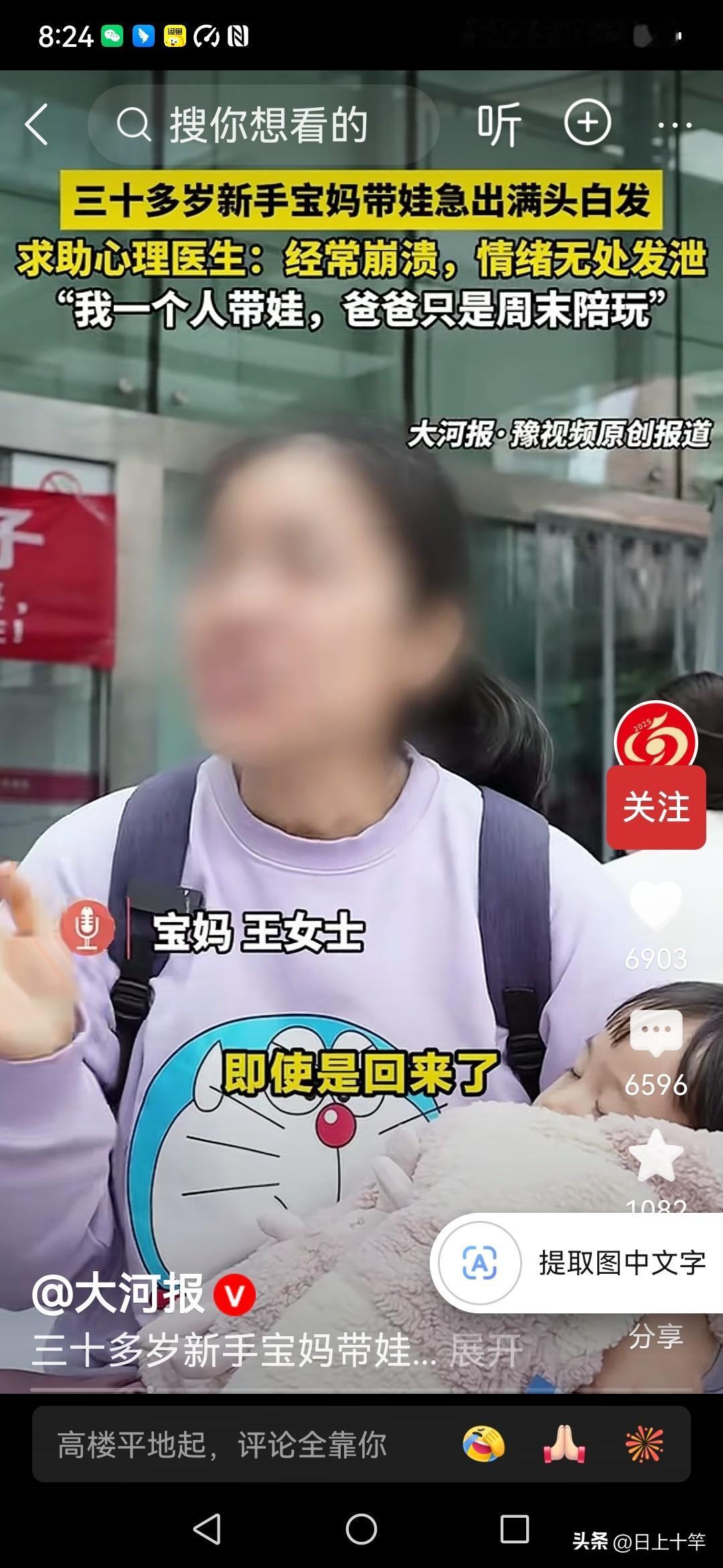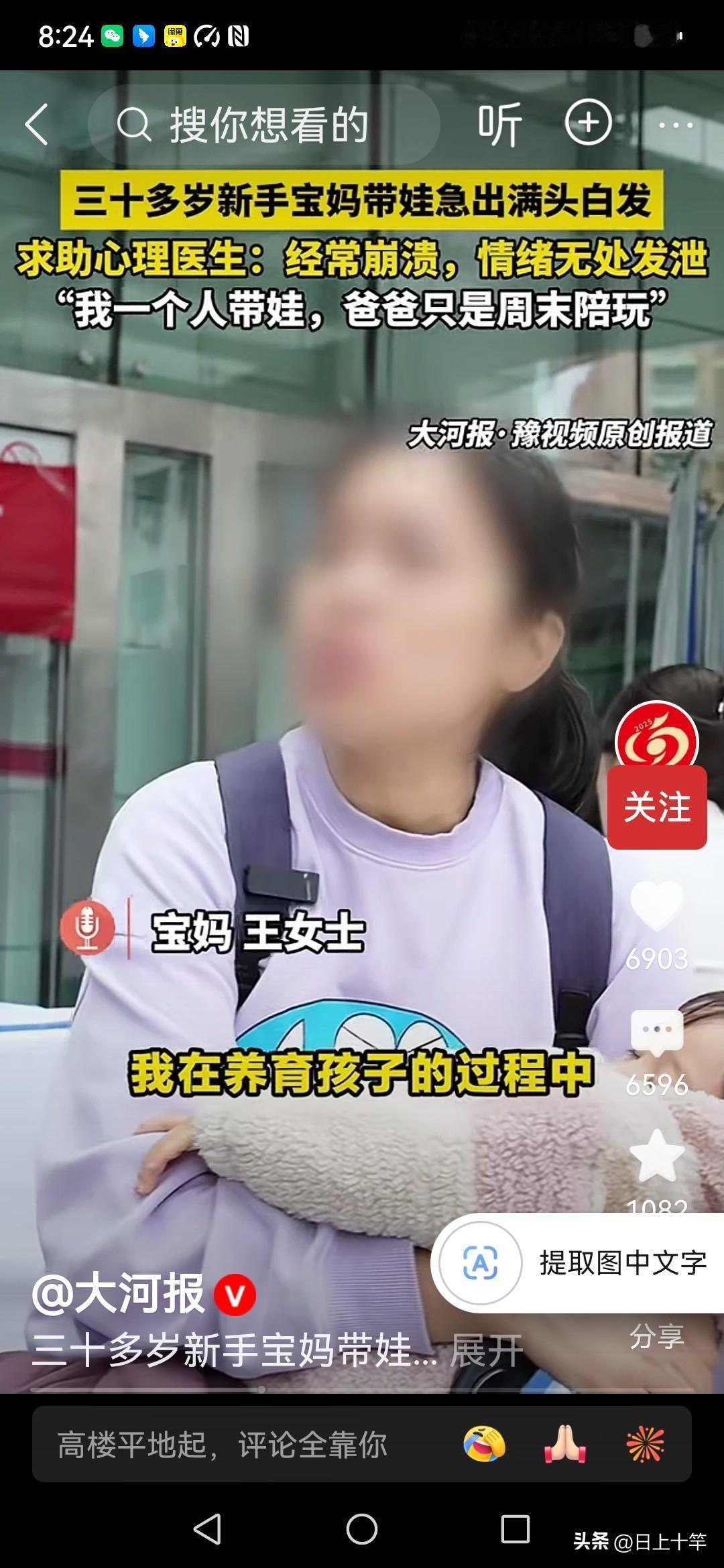 三十岁宝妈,孩子才两岁,已经满头华发丛生了!这是她来寻求心理咨询的现场,面对记者采访,不停地倒苦水。 从孩子出生,她就感觉没人理解她,在乎她;大家的中心和关注点都在孩子身上。 爸爸参与照顾孩子很少,即使周末在家也就是陪孩子玩一会,而孩子有事都是找妈妈,这让她更有压力,感觉没有了自我! 这位宝妈哭述,现在自己的情绪没人在乎,没人能听她倾诉,她也需要自己的情绪能被人接住,如果没人能接住,她就只能发泄在孩子身上,所以现在孩子也没有安全感! 从视频中看得出来,这位宝妈的确非常辛苦和憔悴,事实上很多刚生孩子的妈妈是很容易得产后抑郁的,这时候需要非常小心注意呵护好妈妈的情绪。 只有妈妈情绪好了,孩子才能得到最好的照顾,不要本末倒置,把重心放到孩子身上,其实妈妈才是最重要的那一个!