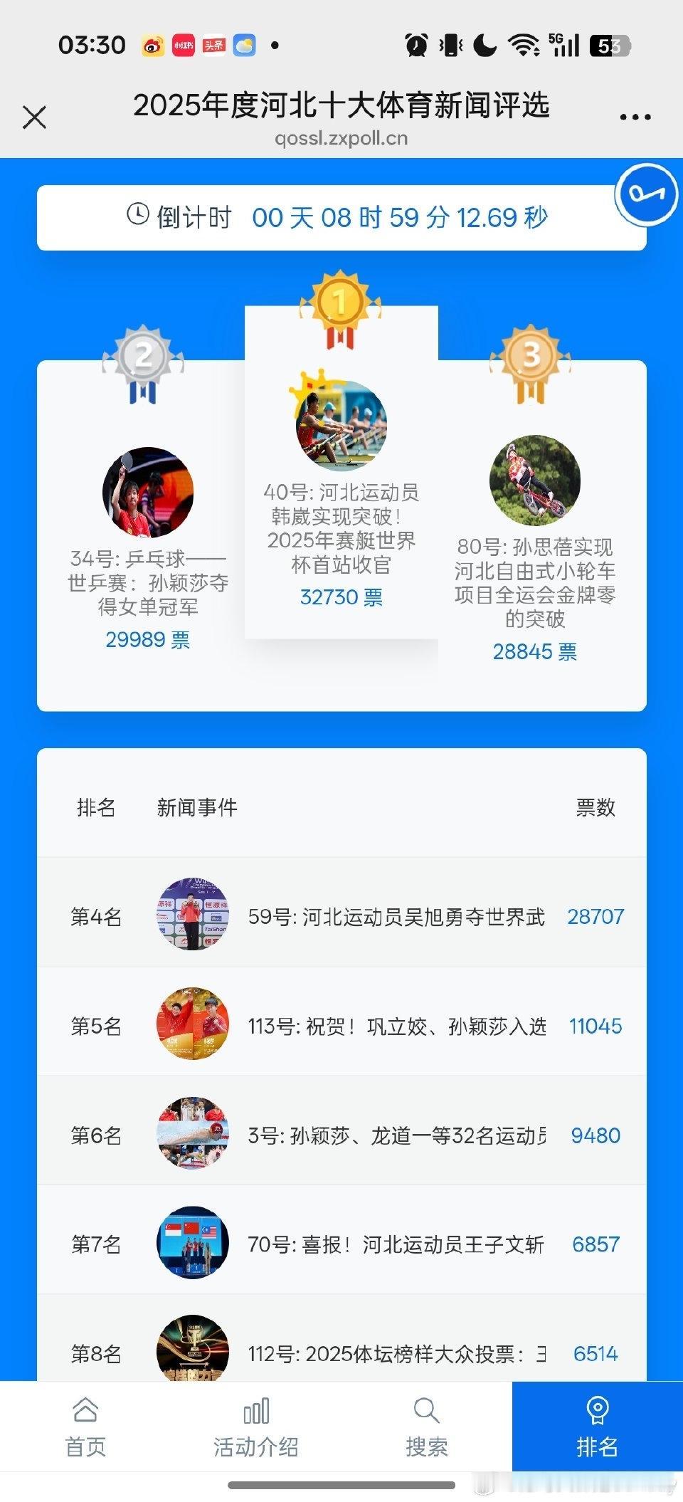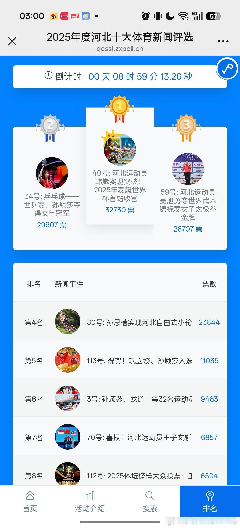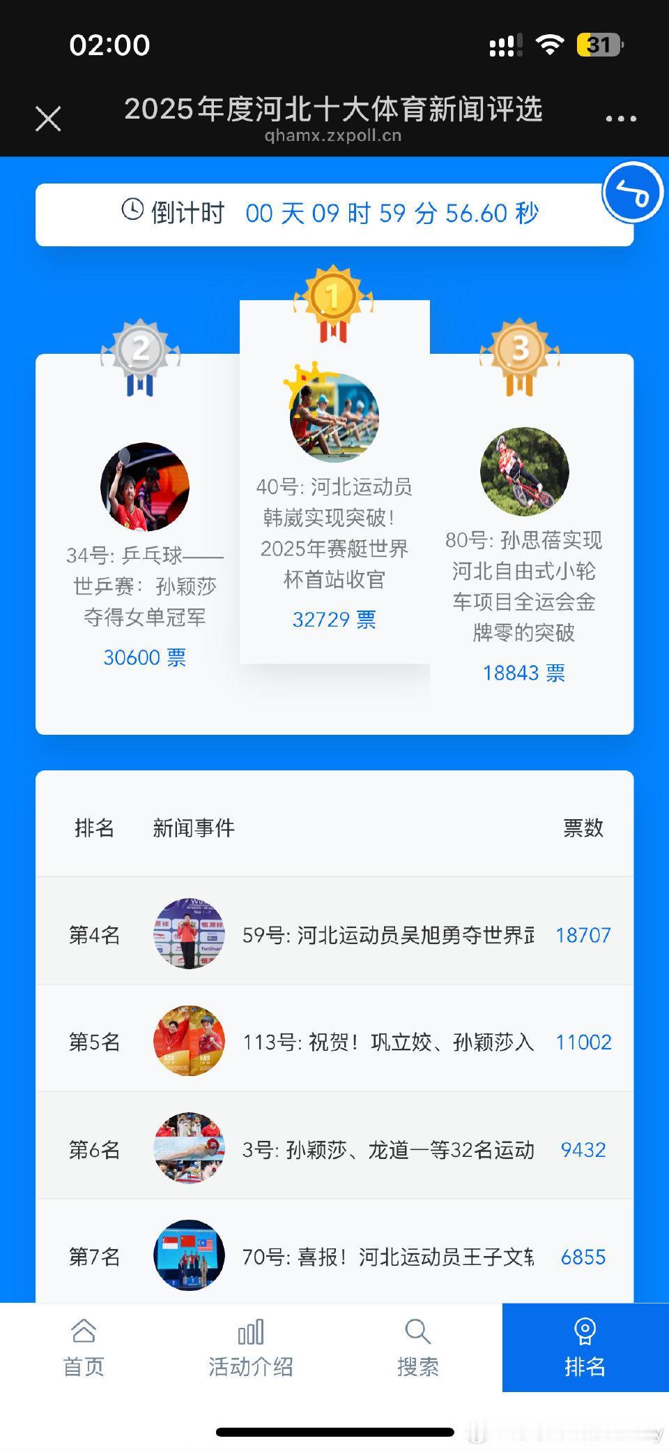 半夜睡不着,记录下河北十大体育新闻票数 34号 40号 59号 80号 1:30 30417 32729 18706 18843 2:00 30600 32729 18707 18843 3:00 29907 32730 28707 23844 3:30 29989 32730 28707 28845 大半夜趁没人,有人票数倒退,有人票数不动,有人飞速增长。 大半夜扒着这组票数数据看,真的越看越离谱,这哪是正常的网友投票啊,明摆着是有人在背后搞小动作,把好好的评选弄成了一场数字闹剧。网上看到这事儿的网友都炸锅了,有人说“这投票榜还不如改名叫氪金榜”,还有人吐槽“大半夜的,活人都在睡觉,难不成是机器人在通宵投票”,更有不少人替34号孙颖莎抱屈,好好的体育新闻评选,愣是被玩出了猫腻。 咱先掰扯掰扯这几组扎眼的数字:40号的票数跟焊死了似的,从凌晨1点半到3点半,就只涨了1票,稳得邪乎;34号孙颖莎的票数更离谱,2点的时候还涨到30600票,结果到3点直接掉了近700票,变成29907票,平白无故少了这么多,别说普通网友懵了,就算是常年玩投票的粉丝,也没见过这么离谱的“票数倒退”操作;再看59号和80号,那票数跟坐了火箭似的,59号从18707票一下子蹿到28707票,80号也从18843票飙到28845票,短短两小时各涨了一万票,这速度,普通人手动投票根本不可能做到,明眼人都能看出来是刷票了。 本来这河北十大体育新闻评选的投票,是让大伙选出自个儿最认可的体育事件,靠的是真心实意的支持,拼的是事件本身的分量。孙颖莎拿下世乒赛女单冠军,这可是河北乒乓球领域的大突破,论关注度、论含金量,哪样都该是榜单里的热门,结果她的票数不仅没正常涨,还莫名倒退,这背后的操作,直接把投票的公平性踩得稀碎。 更让人觉得膈应的是,这场评选本来是给河北体育健儿的荣誉,结果愣是变成了“比谁刷票技术高”的赛场。那些半夜里疯涨的票数,根本不是大众的真实想法,全是刷票团队或者机器的“功劳”,这样选出来的“十大体育新闻”,还有啥荣誉可言?说白了就是自欺欺人,既对不起那些靠真本事拼成绩的运动员,也寒了真心投票的网友的心。 网友们生气,根本不是因为自家支持的选手没拿第一,而是气这场投票彻底没了“公平”二字。体育赛场讲究的是实力说话,体育新闻评选也该靠事件的影响力服众,用刷票、改票的手段控结果,不光玷污了评选的初衷,还让河北体育的这份荣誉变得不值钱。 其实不光是这场评选,这些年不少体育相关的网络投票,都躲不开刷票、控票的坑,看似热闹的票数,背后全是水分。但大伙心里都门儿清,真正能被记住的体育荣耀,从来不是刷票刷出来的,而是运动员用汗水拼出来的。孙颖莎的世乒赛冠军,不会因为票数的猫腻就失色,那些靠刷票堆出来的高票数,终究只是一堆虚假的数字罢了。体育榜单争议 体育评选 河北体育之乡 这场凌晨的票数闹剧,直接撕开了网络投票乱象的遮羞布,也让大家看清了某些评选的真面目。那么在你看来,这种满是猫腻的网络投票,还有办下去的必要吗?又该咋做,才能让体育评选回到“凭实力、凭影响力”的正轨上?