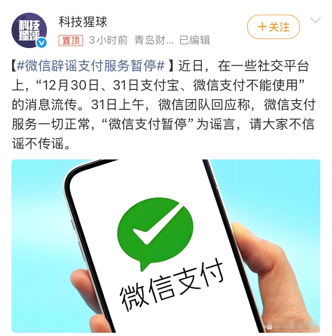 支付宝、微信支付不能用了这种消息,真有人会信?移动支付时代,这两平台几乎占了整个市场,服务暂停太天方夜谭了。微信辟谣支付服务暂停