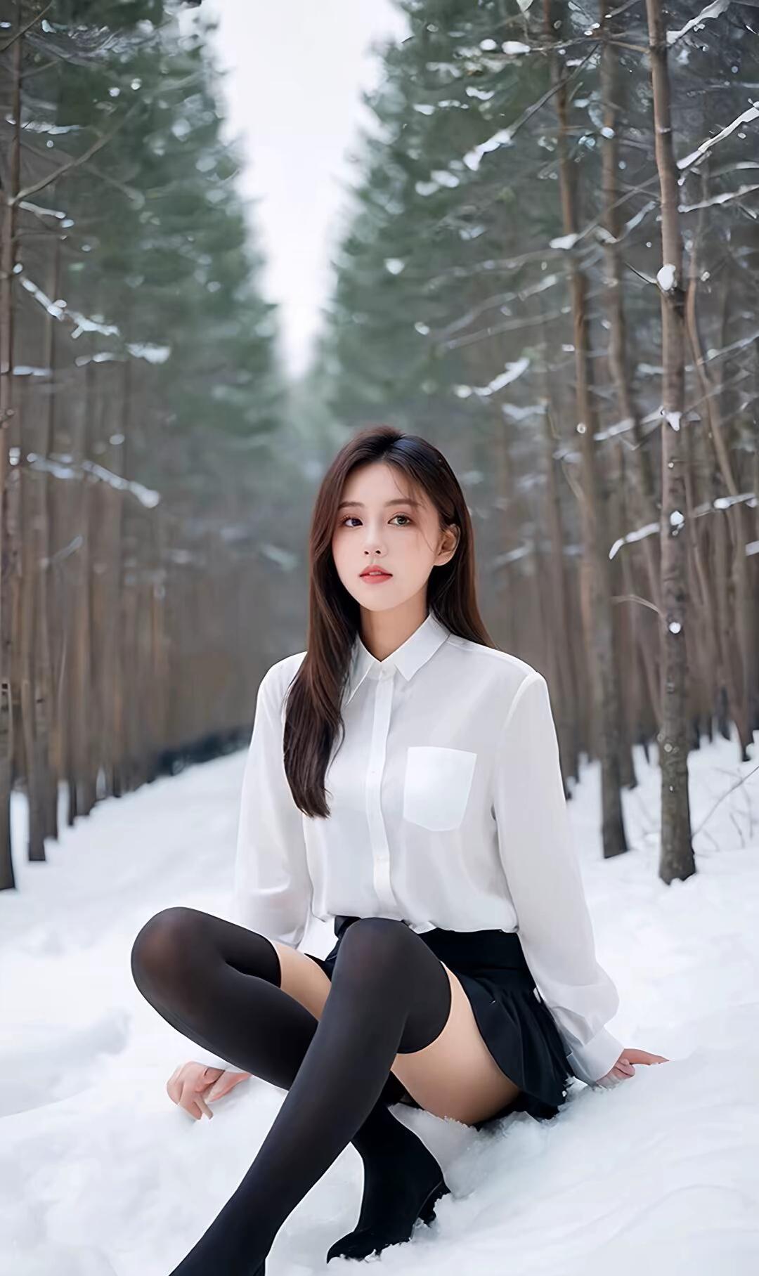 雪林里的白衫黑丝撞出清冷氛围感,皑皑白雪衬着利落的穿搭,在冬日林间定格一抹冷冽又惊艳的美