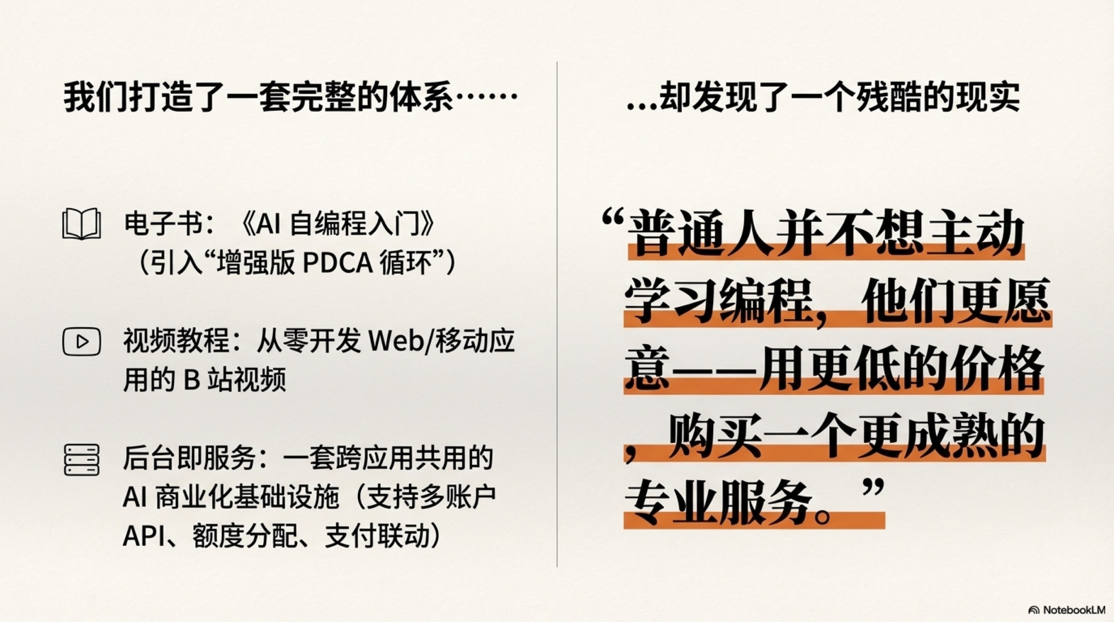Easy同学正在独立开发 2025年结束了。昨晚回顾了下今年的独立开发经历。前期折腾太多,试错太慢。后来有了《创业模拟器》以后消停了很多,很多想法被批得狗血淋头,然后就不做了 太长懒读,于是丢给NBLM做个PPT。