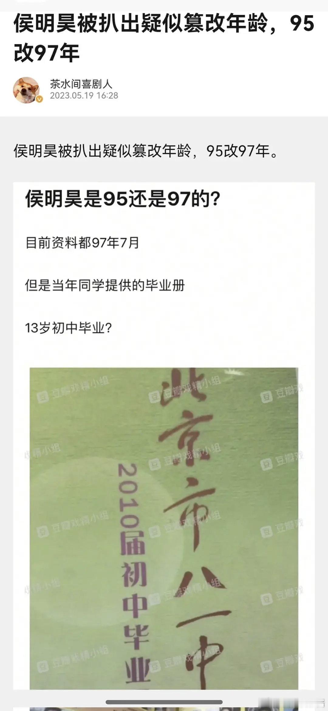 侯明昊原本年龄是95年,改成97年了吗