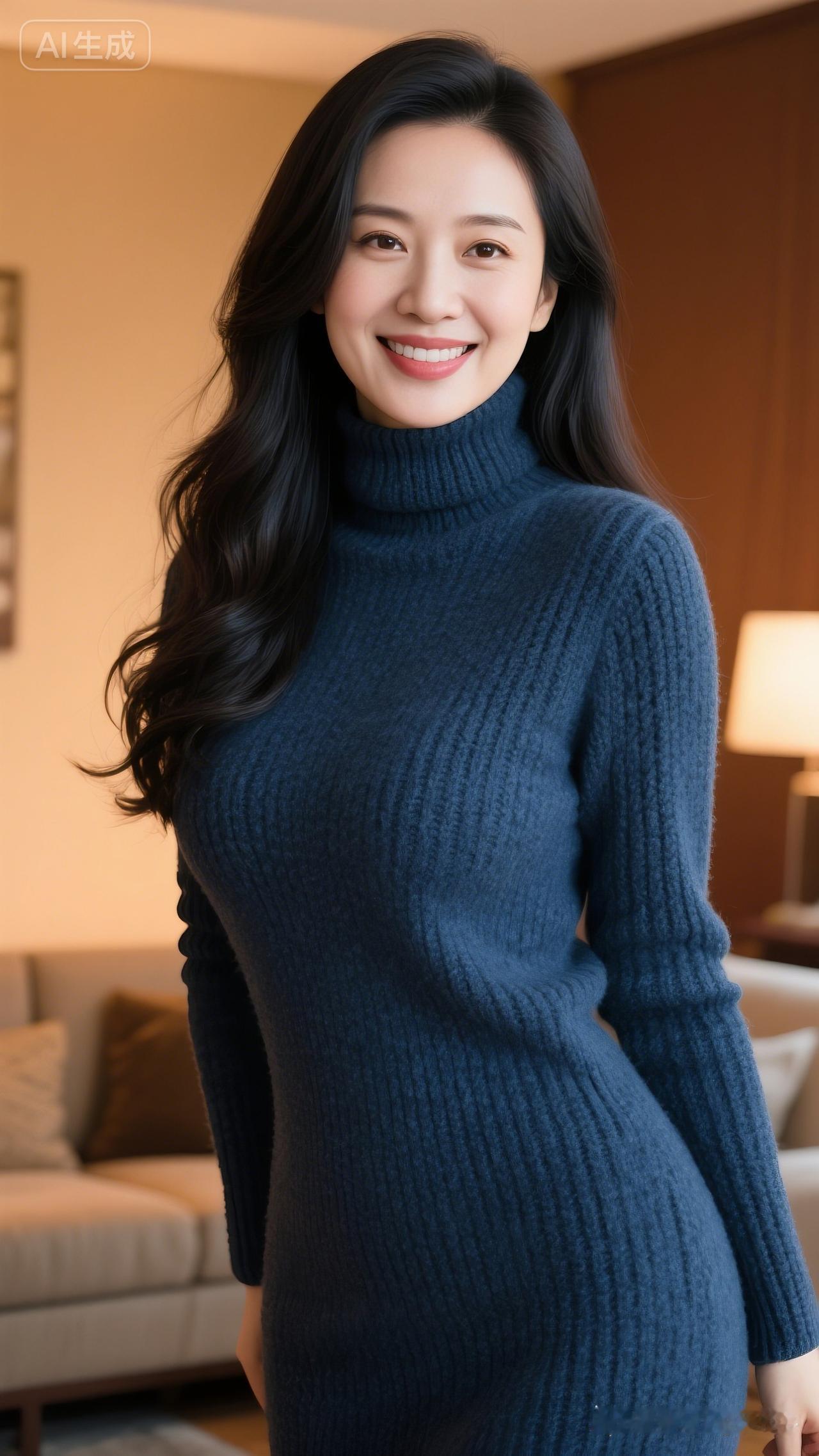 温柔优雅的白色毛衣,甜美笑容,尽显冬日暖意。