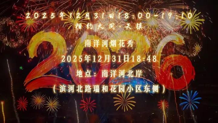 #山西废止烟花禁令后首场跨年烟花秀#【大同天镇县迎新年烟花秀,吸引外地网友!山西已废止禁放令】#大同天镇烟花秀吸引邻省游客#近日,山西宣布废止烟花爆竹“五禁”政策。12月31日,南都N视频记者向山西省大同市天镇县相关部门证实,当地确定将于31日晚举办一场迎接新年的烟花表演。活动还吸引了邻省网友的关注,有北京、河北等地的网友称,要驱车几小时来看。稍早前,太原方特也曾筹划在元旦期间的夜场演出中加入“烟花”环节,但后续取消。12月31日下午,南都N视频记者向山西省大同市天镇县相关部门了解到,由天镇县新时代文明实践中心主办,天镇县文旅局、天镇县融媒体中心、天镇县天成文化旅游投资有限公司联合承办的“文化润边城 聚力启新篇”迎新年系列活动中,将有“南洋河烟花秀”环节,计划于当日18时许开始。整个表演持续约15分钟,届时迎接新年的烟花将绽放在南洋河北岸上空。稍早前,山西省太原市方特东方神话主题乐园也曾筹划在元旦期间的夜场演出中加入“烟花”环节。不过,就在12月29日,太原方特发布公告称,“由于不可抗力因素”,2025年12月31日至2026年1月3日夜场演出“烟花”环节取消,其余演出节目正常进行。南都记者致电乐园服务热线,工作人员称是“接到相关通知”,遂作出调整。南都此前报道,2020年,山西省人民政府曾发布通告,规定自当年10月1日起,在该省行政区域内禁止生产、经营、储存、运输(除省外途经合法车辆外)和非法燃放烟花爆竹。今年12月16日,此政策停止执行,不再作为行政管理依据。12月21日,山西省应急管理厅印发《关于做好全省烟花爆竹经营安全监督管理工作的通知》,对全省烟花爆竹经营的布点规划、行政许可、培训考核和日常监管等方面提出明确要求,新的管理措施正陆续出台。在山西省调整烟花爆竹管理后,中国烟花爆竹协会发文表示:“此举意味着山西省烟花爆竹管理从全面禁放模式,正式转为科学限放管理模式。”该协会称,将积极支持和协助山西调整烟花爆竹燃放政策的相关工作实施,助力科学精准施策,推动行业健康有序发展。采写:南都N视频记者 侯婧婧