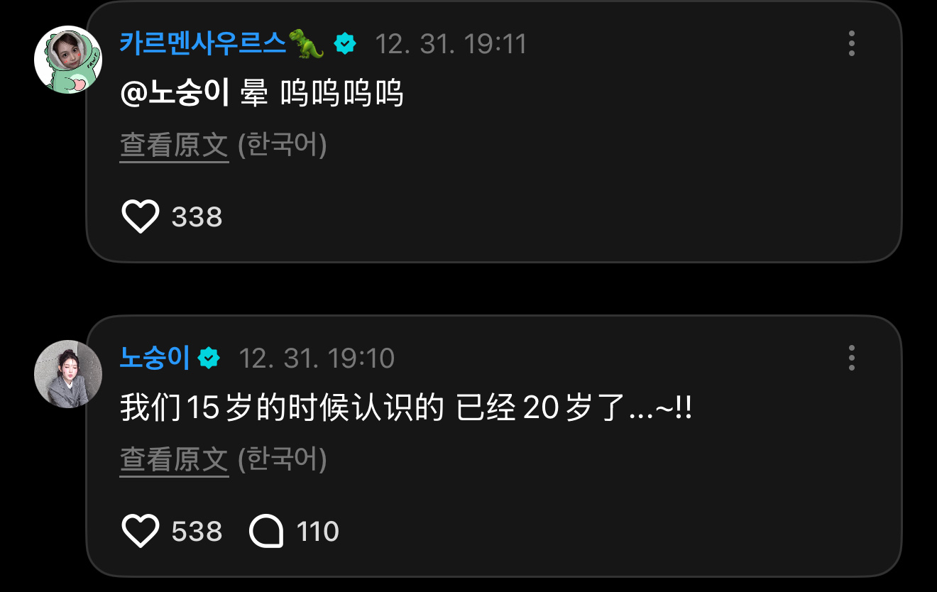 🌻:我们15岁的时候认识,现在居然已经20岁了…~!!(🇨🇳算法:13岁认识,现在是17岁)🌴欧尼:呜呜呜