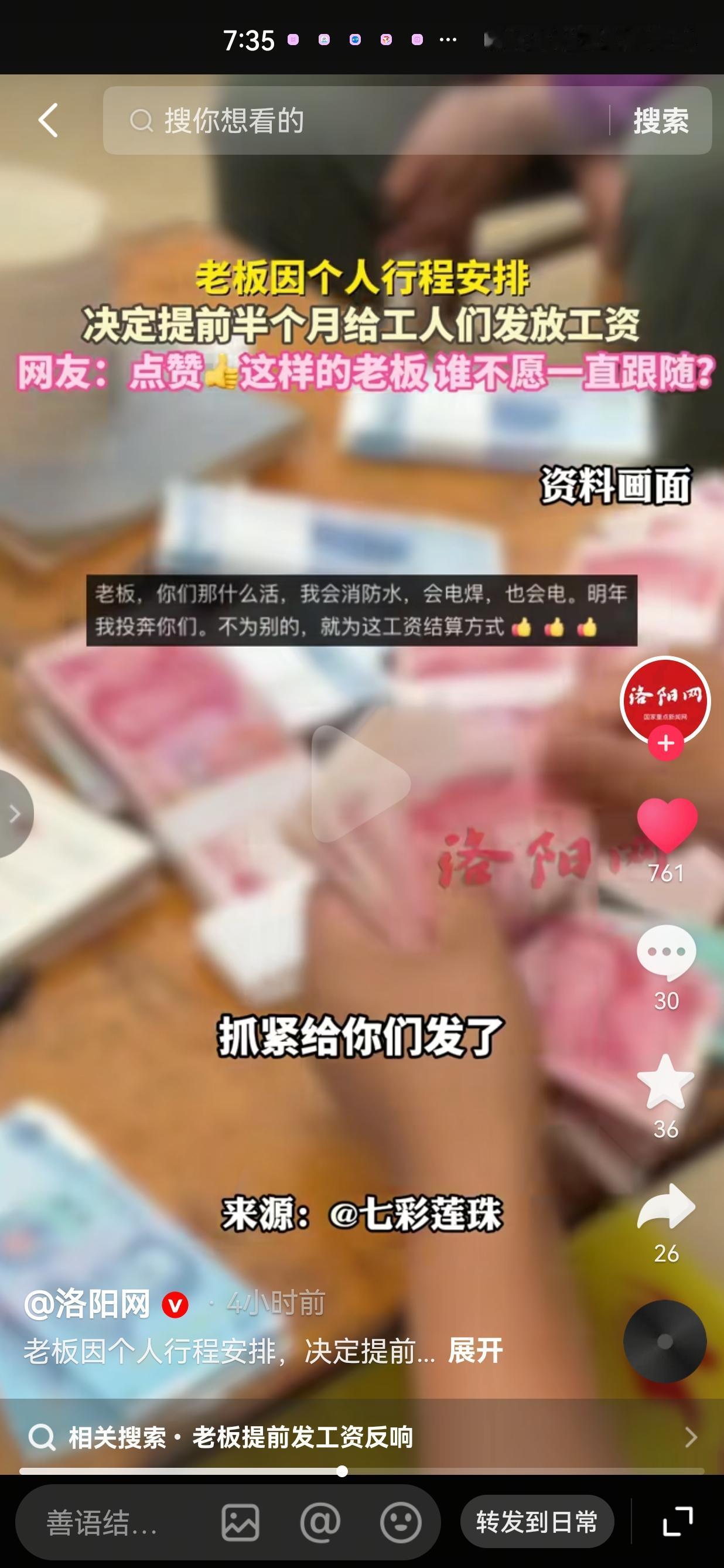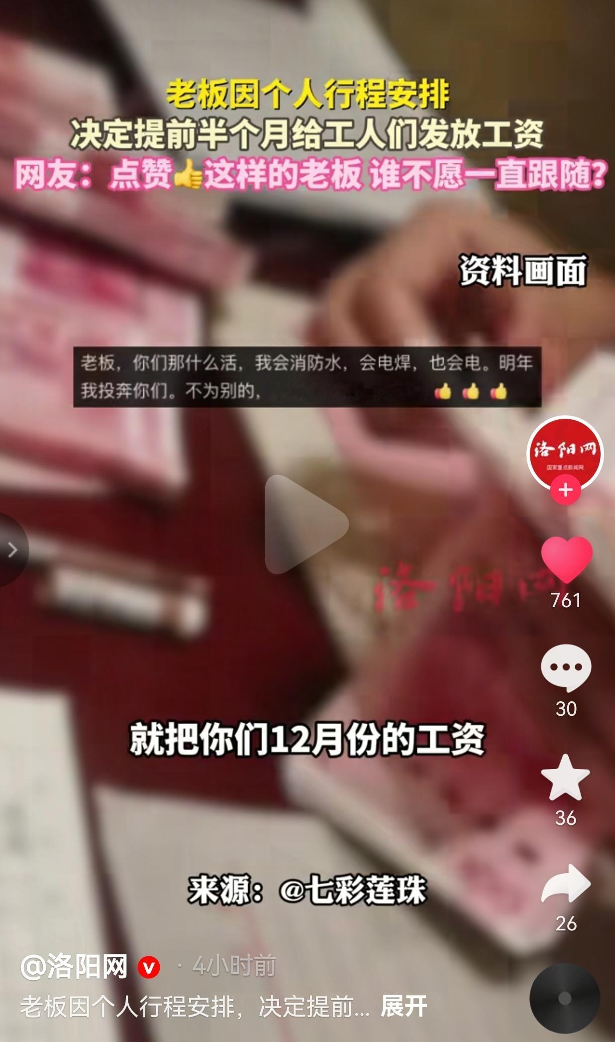 这才是有担当的老板!老板因个人行程安排,决定提前半个月给工人们发工资,北京老板这波操作操作,直接让打工人破防了。 12月30日,北京一老板叫员工过来,交代发工资的事情。 据这位老板讲述,本来12月的工资得等到1月15号才发,就因为他1月6号要去云南玩,怕耽误发薪时间,干脆大手一挥,提前半个月把工资结了。 他还特地嘱咐工人:“回去算算到31号的工时,跟李工长对一对,明天把数报上来,我把工资提前发给你们。” 本来我以为又是那种工人讨薪的心酸场面,结果看完直接暖到心窝里——哪有什么催着要钱的拉扯,全是老板主动拍板“提前发呗”的干脆利落。 网友看到视频后,彻底不淡定了,有的网友说:“提前发工资的老板,全国找不出几个。” 还有的网友说:“这年头能月底清工资的老板就够稀罕了,还能提前的,简直是神仙”“老板缺人不?我明天就去投奔,不为别的,就为这份踏实”。 也有的网友说:“你发财我们不眼红,这钱就该你挣。” 其实打工人要的真不多。不是老板画的那些天花乱坠、遥不可及的大饼,也不是挂在嘴边的一句“辛苦了”,就是一份实实在在的尊重,一份踏踏实实的靠谱。 按时发工资是本分,提前发工资就是情分。这位老板不光记着发薪的日子,还特意让工人核对工时、统计薪资,把大家伙的生计放在心上,这样的老板,工人能不卖命跟着干吗? 再看看现实里,多少老板总觉得“员工多干点活是应该的”,拖欠工资成了家常便饭,画饼画到工人都麻木了。 他们咋就不明白呢?人心都是肉长的,你把工人当家人,工人就把活儿当自家事。你把工人当干活的工具,工人也只会把工作当成应付差事。 这位北京老板的举动,哪是发一笔工资那么简单,简直是给所有当老板的、做管理的上了生动一课。 对打工人来说,遇上这样的老板是天大的幸运。对老板而言,能留住人心,才是一家企业最值钱的财富。 说到底,咱打工的人所求的,不过是一份安稳的收入,一份被人重视的感觉。 真希望更多老板能懂这份简单的期待,别让“按时发工资”,变成打工人的奢望。别让“靠谱”,成了职场里最稀缺的品质。 大家觉得呢?欢迎大家评论区讨论留言。