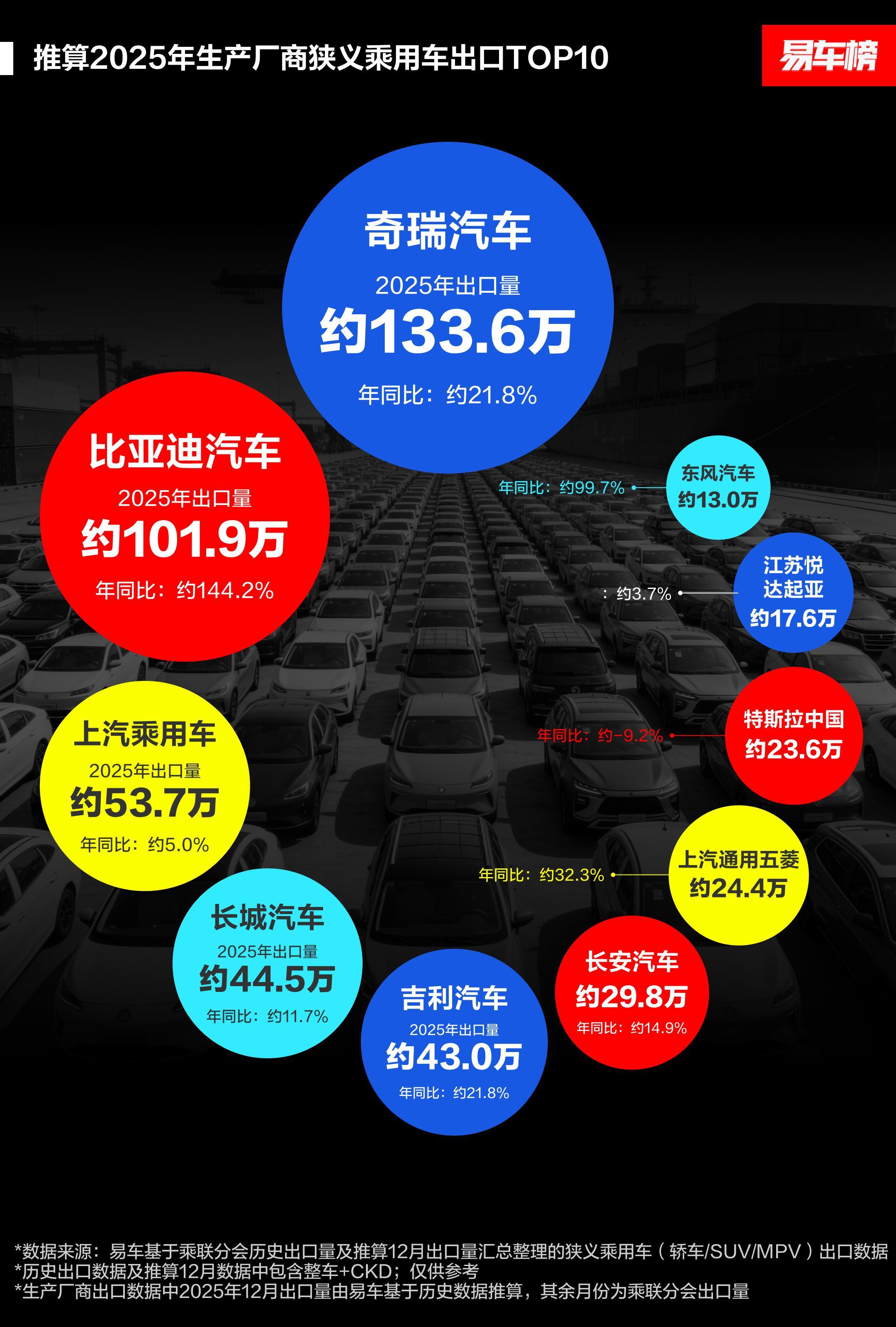 易车榜的中国出海总结。很意外的是长城、吉利都快要贴近上汽集团了,感觉出口排名在2026年会调整。汽场全开大v聊车