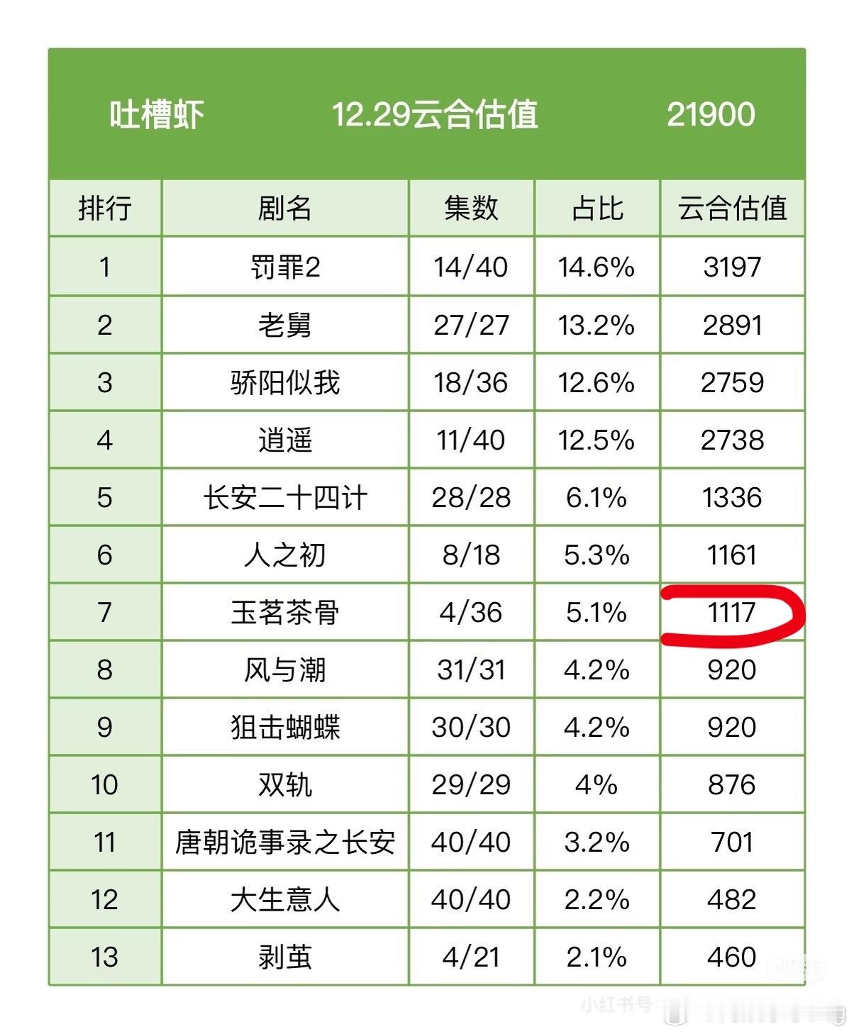 云合也是个草台班子…玉茗茶骨首日给1100多,酷云给500多…次日给1200多,酷云给1200多…云合涨幅100多…纯搞笑的…云合数据绝对有问题的