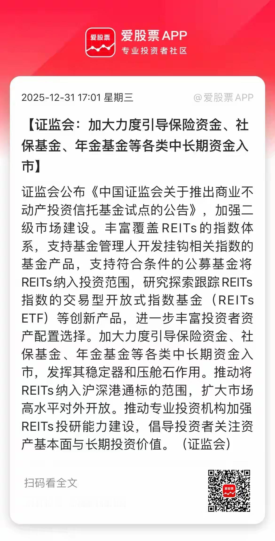 节后股市开门红将是大涨行情走势,加大力度引导社保基金!保险资金,各类基金实现中长期资金入市,中国股市实现慢牛行情走势,而不是短期的冲高,然后再回落中国,要走出长期价值投资的市场,在加大力度引进中长期的资金入市!建中国资本市场服务实体经济!长期资金是非常有必要的!那未来会引进更多的外资进入中国资本市场进行投资!目前中国制造市场已经形成了具备吸引外资的巨大潜力!在中国科技创新发展的前提下,实现更多的科技技术突破以及AI人工智能巨大的潜力发展,吸引更多的外资进行投资中国资本市场!