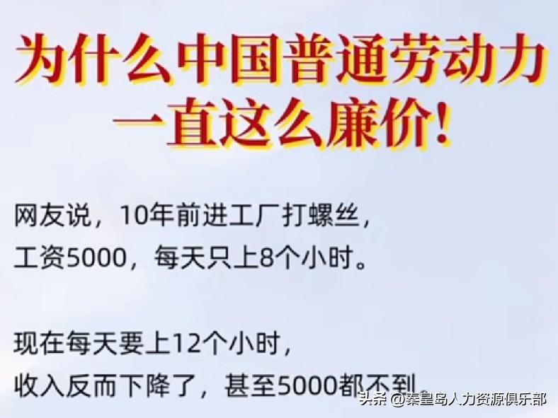 现在打工真是越来越难了,十年前进厂打螺丝,一个月稳稳5000块,每天八小时到点就走。现在倒好,每天干满12个钟,两班倒,累死累活工资还没十年前高,连5000都难拿到! 可气的是,就这条件厂里照样不愁招人,老板动不动就说“爱干干,不干有人顶”。为啥这么硬气?因为每年毕业的大学生一茬接一茬,劳务中介和外包公司吃得饱饱的,工价却越来越低…… 咱普通人的劳动力,咋就越来越不值钱了呢? 真不知道这班还要熬到啥时候……