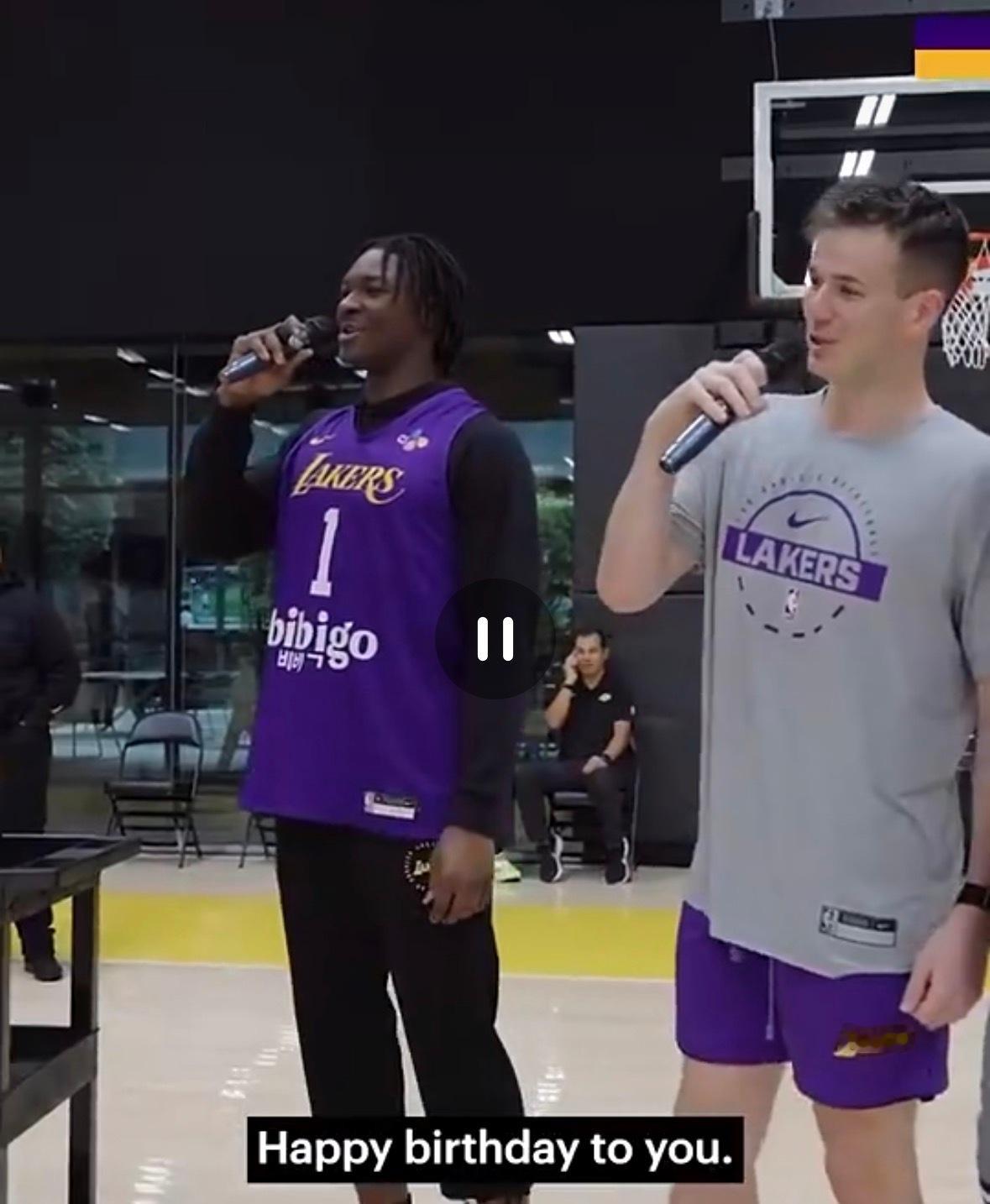 湖人训练结束后,给詹姆斯过了生日。艾顿指挥新秀,唱生日快乐歌~nba