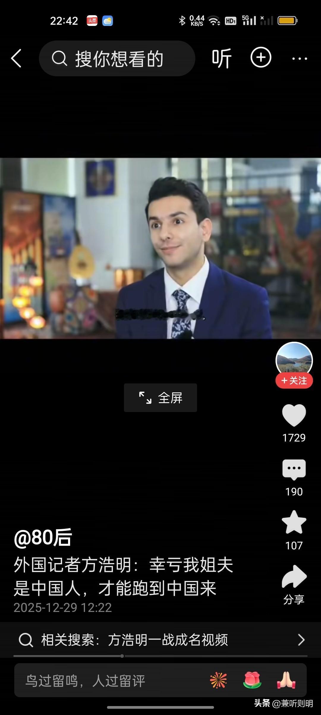 方浩明,真幸福啊!这位来自伊拉克的外国人,如今已是拜迪中俄卫视驻华的知名记者。自2011年随父母踏上这片古老而又充满活力的土地,他便与中国结下了不解之缘。十四载春秋,他在这里生活、学习,更在中国度过了整整十四个温馨的春节,每一声鞭炮响,都仿佛是他融入这个大家庭的欢歌。 他何其幸运,不仅因姐夫是中国人,让一家人在战火纷飞中寻得一片安宁,更因自己的才华与努力,在异国他乡绽放光彩。当王毅部长一眼认出这位驻华记者时,那份喜悦与自豪,如同暖流涌遍全身,那是对他多年付出的最好肯定。 而我们老百姓,也早已将他视为朋友,他的中文流利如母语,情商高超,总能以真诚与热情赢得周围人的喜爱。方浩明,这个优秀的外国朋友,正以他的方式,继续在中国这片热土上发光发亮,书写着属于自己的精彩篇章。
