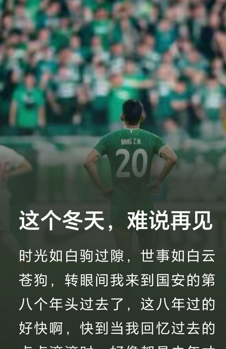 王子铭发长文告别北京国安! 北京国安球员20号王子铭,年末发长文“这个冬天,难说