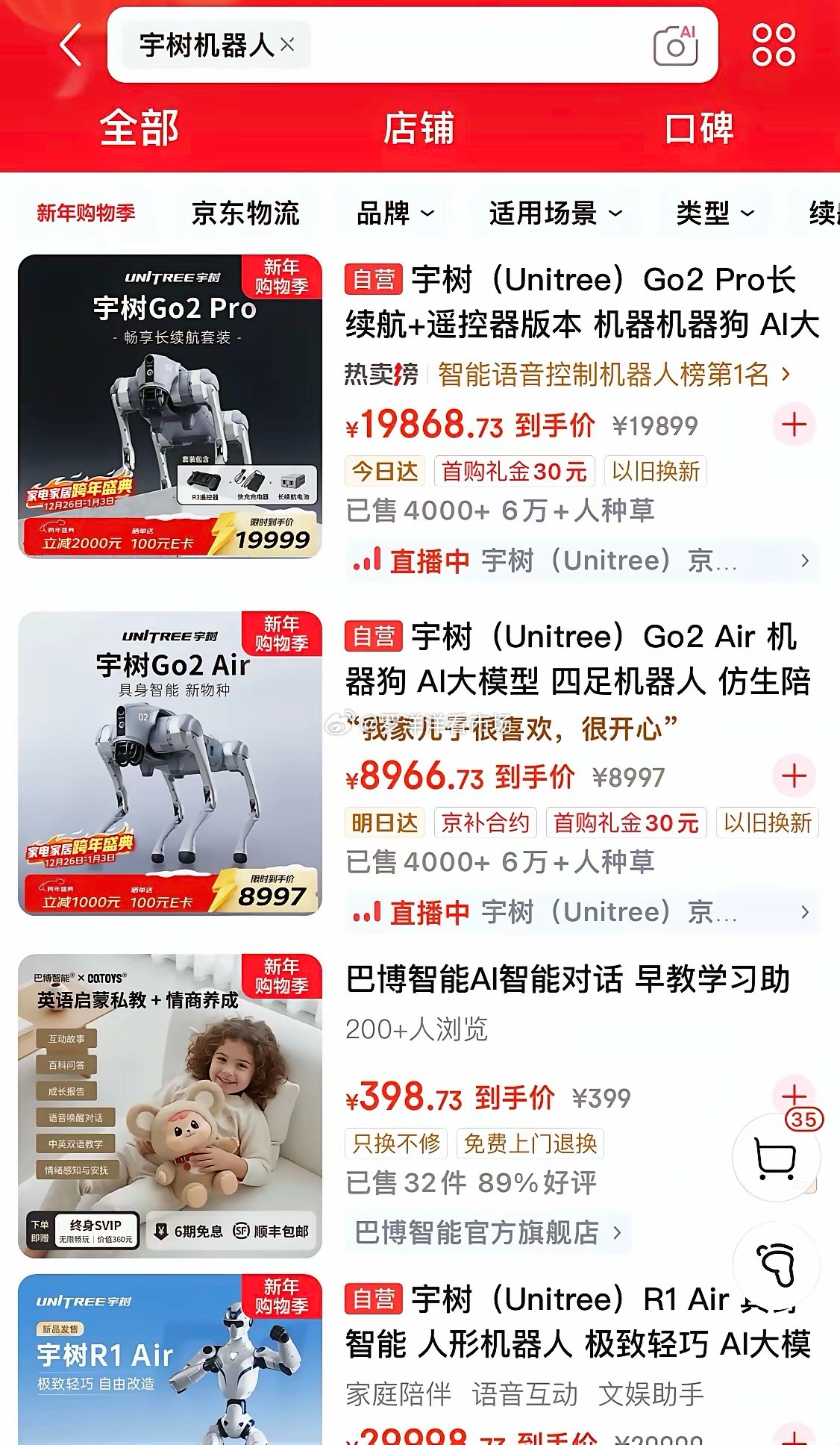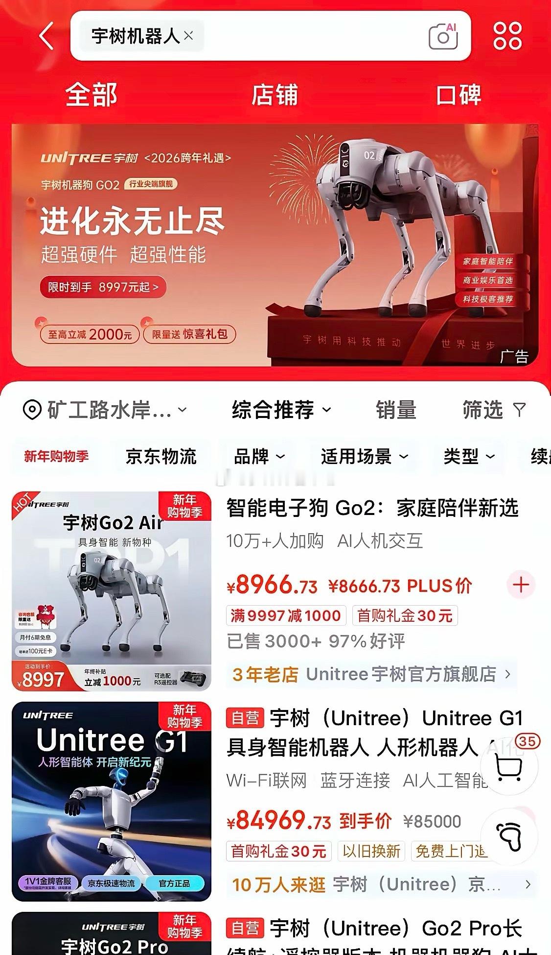 宇树科技联合京东商城12月31日开启线上门店,截止31号8点销量蹭蹭的上涨,半天的销量赶上了宇树科技去年营收的10%还多。2026年必将是宇树科技元年,上市只是第一步,前面必将是一片蓝海等着去开拓。宇树机器人机器人宇树科技宇树科技机器人宇树机器人公司