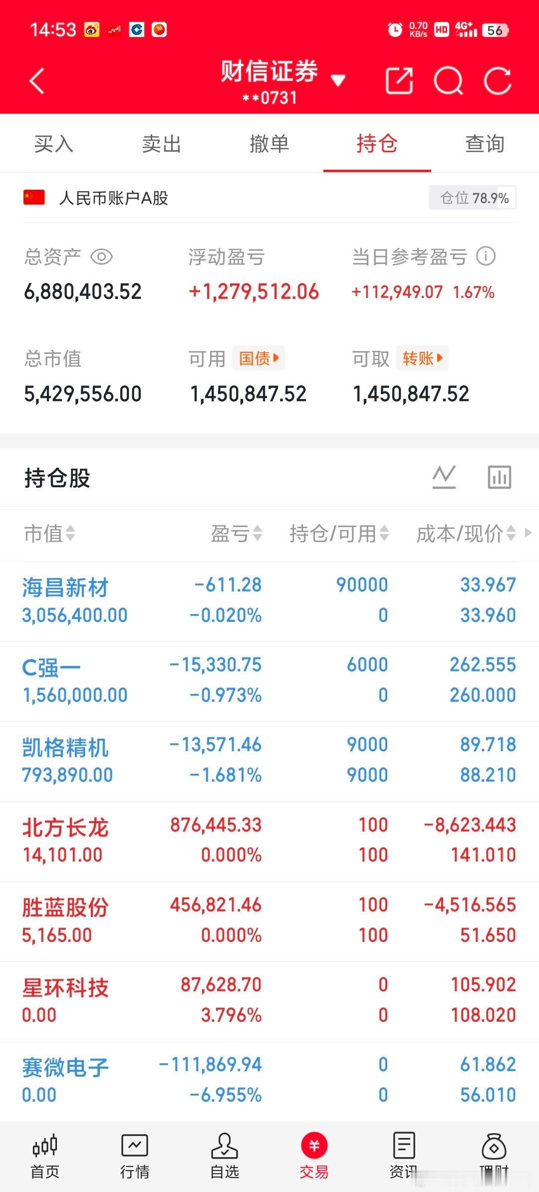 今天是12月31号星期三!(600w)翻倍操作之旅的第10天;欢迎粉丝朋友观察,盈利人生星环科技今日大涨止盈落袋,凯格精机继续持有等待大涨昨日上车赛微电子期待吃面走人今日上车C强一,海昌新材特别声明:我开实盘的目的主要是为了记录我对A股走势的思考和研判,并用于记录我自己的操作笔记,是我积累股票投资知识和反省操作失误的一个平台,绝不是读者朋友买卖股票的依据和理由,不具备投资建议,据此操作,需自行承担投资后果,股市有风险,投资需谨慎!!!看到的朋友点个赞,扣一波“888”支持,我会每天坚持发出自己的操作来!兄弟们,点赞富三代,评论美一生!!