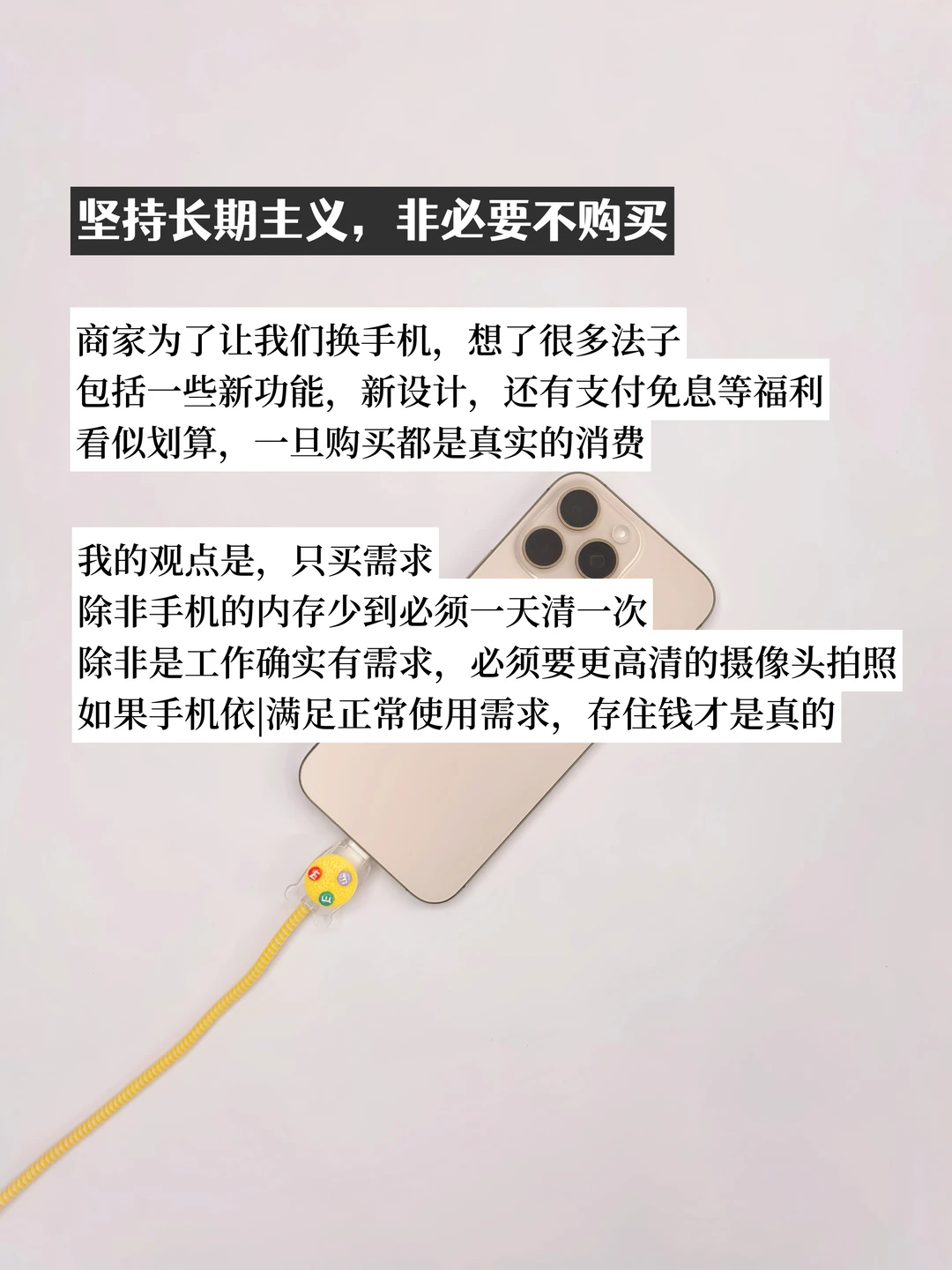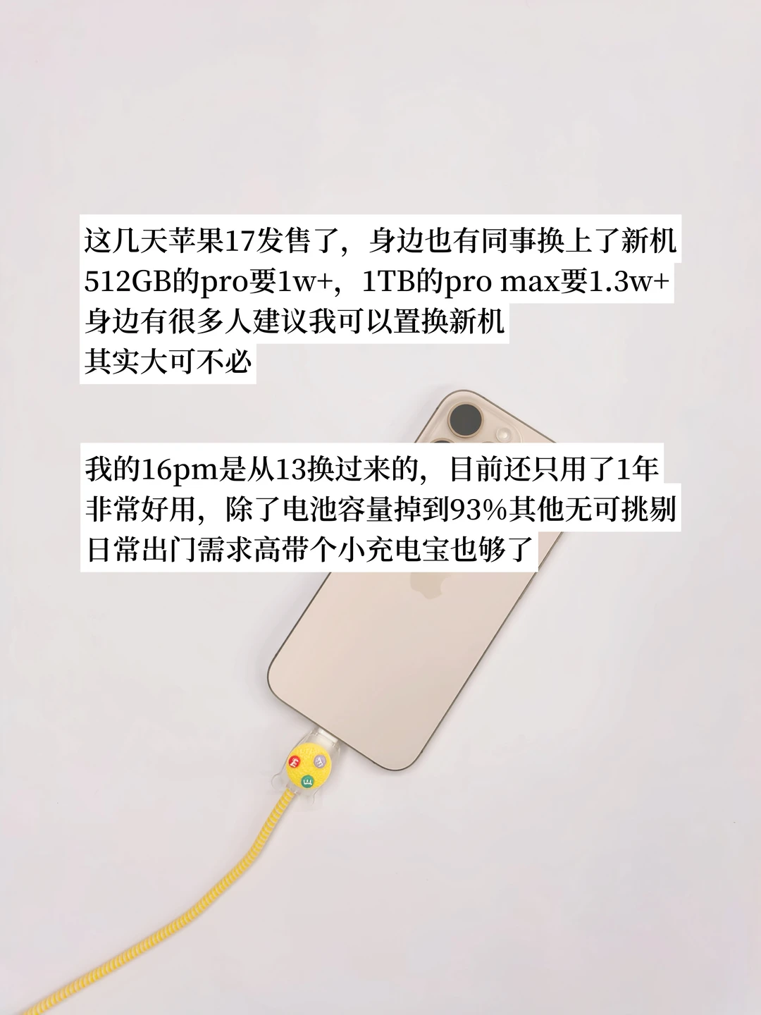iphone17都已经出了 我的16pm是从13换过来的,目前还只用了1年,非常好用 对于我来说,手机只是工具,不代表身份 我不追求新款,更注重实用和性价比 - ▪️我的手机6年使用计划 ▪️戒掉使用手机陋习 ▪️给手机安排两件套 ▪️坚持长期主义,非必要不购买 - 你的手机目前使用几年了呢?