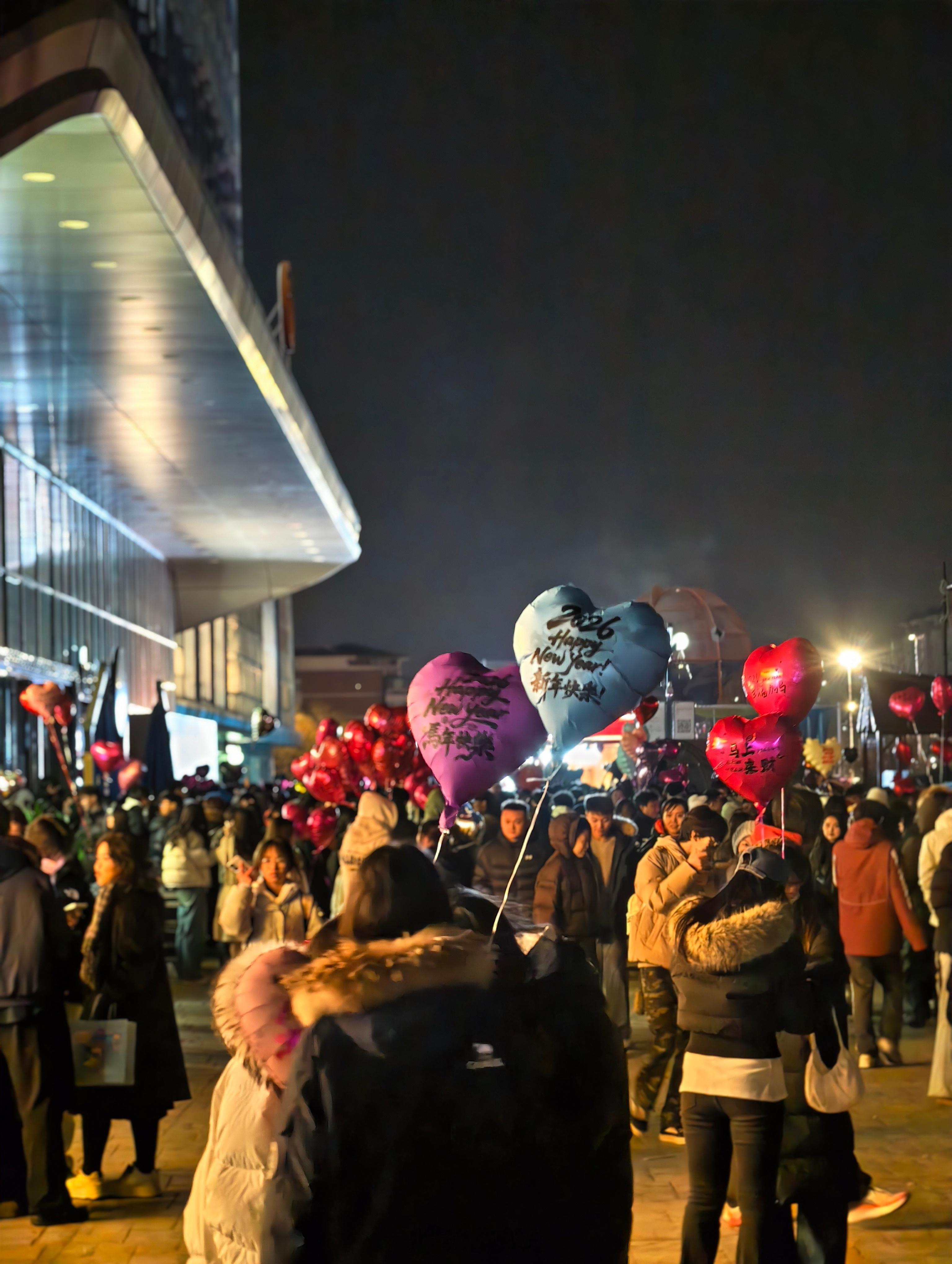今晚跨年夜 依旧一直在电脑前工作儿子从阳台上看见万达广场聚集了很多人,好像很热闹的样子,于是乎我俩也下来了。尽管广场上的工作人员一再宣称“没有跨年活动,请大家回家”,但大家还是拿着气球不愿离去。为什么?只因这是人们心底自发生长出的、并不需要高昂成本的,更不愿意去妥协的寻常生活下的仪式感。 新年快乐
