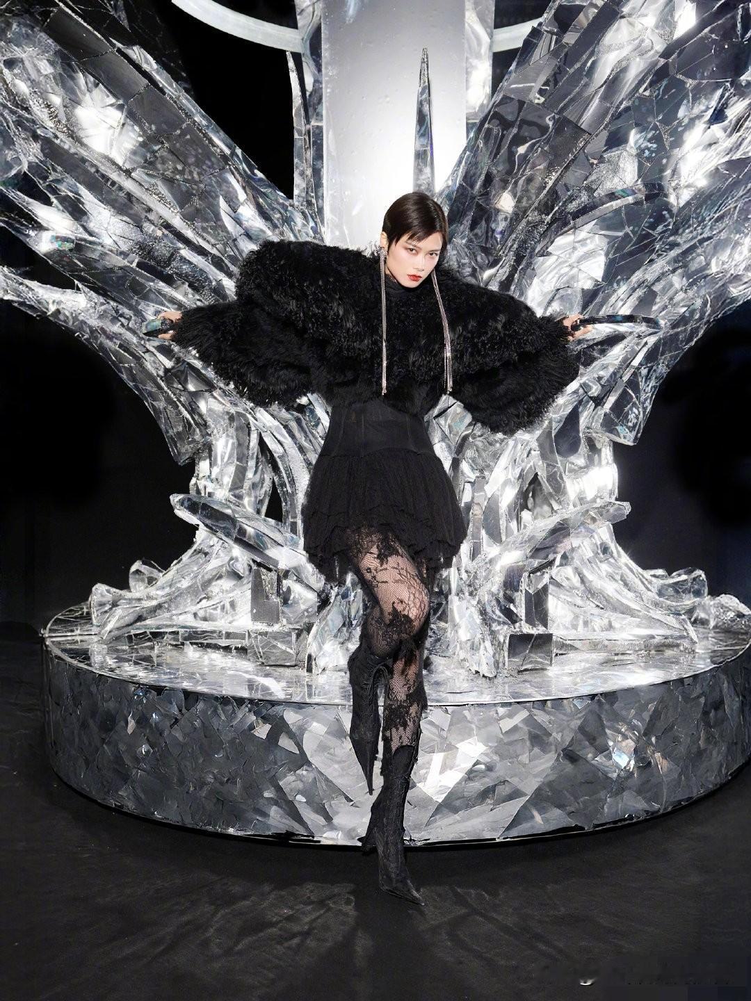 你们发现了没, 李宇春身上有一种玄学, 就是只要她出现在跨年晚会上,不论她是不是零点出现,只要她一露面,那热度绝对是杠杠的,而且最出圈的永远是她的穿搭。 李宇春今年跨年这身穿搭,简直是把“暗黑女王”的范儿焊在了身上,还打破了大家对她的固有印象,通俗点说就是又飒又媚: 上身套着一件黑色大羽毛外套,袖子蓬蓬的跟翅膀似的,看着就特别有气场; 下半身配了黑色蕾丝裙和蕾丝长靴,镂空的蕾丝又添了点柔媚的女人味, 和硬邦邦的冰晶舞台背景一对比,黑与白、柔与硬撞得,是不是特别有感觉? 而且,全黑的搭配本来就显酷,再加上她脖子上细金属链的小点缀,又精致又亮眼,完全跳出了她之前偏中性的穿搭路子, 跨年的仪式感,永远有她的名字,又帅又美,大家觉得呢?