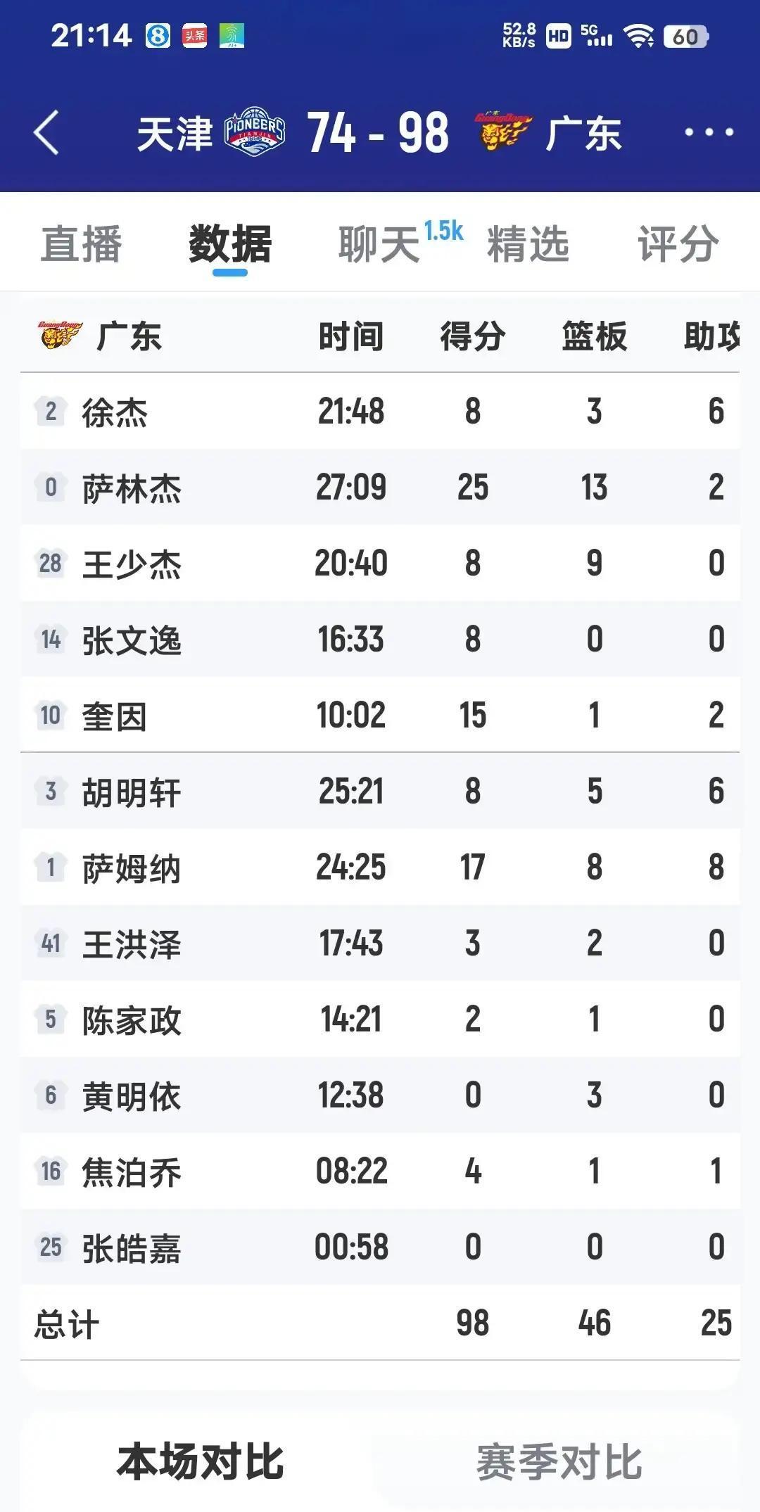 98:74,天津主场安静了 杜锋带队8连胜,却藏着3个坏消息。张皓嘉13分钟挂零,黄明依0分3板,俩年轻人像被按了暂停键。王少杰稳,萨姆纳17+8+8,老将外援兜底。真正扎心的是:广东队防守效率联盟第一,场均只丢85分,年轻人却跟不上节奏。赢球靠体系,未来靠谁?