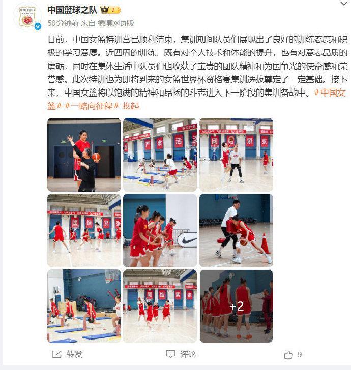 中国女篮结束特训营 今天发文表示中国女篮已经结束了近四周的特训营。集训期间队员们展现出了良好的训练态度和积极的学习意愿
