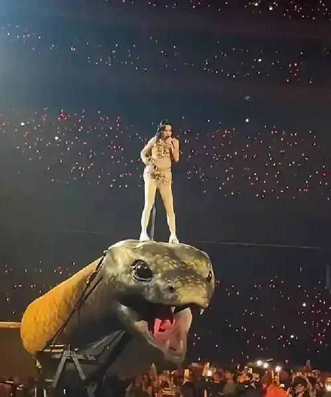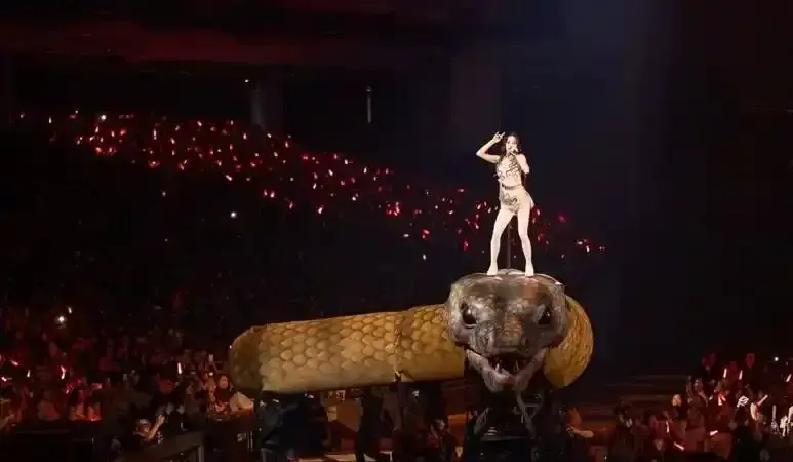 30米巨蛇睁眼那秒,全场倒吸凉气 蔡依林刚站上蛇头,金属鳞片哗啦一响,前排小姑娘哇地哭出来。这不是道具,是德国工程师+台湾师傅熬半年做的铝合金巨兽,里头塞了两百个小马达,一吨多重还能点头摆尾。 造价900万人民币,等于台北三套房。团队说灵感来自玛雅羽蛇神,象征重生。可观众只记得那两颗绿眼激光,扫过来像真被盯上。 民调五千人,六成觉得震撼但得提前打预防针。年轻票友买票就为看这口新鲜,爸妈辈摇头:听歌而已,至于吗? 我听完回放,鸡皮疙瘩还在。艺术就是把最怕的东西做成舞台灯,闪完才发现,原来恐惧也能这么亮。