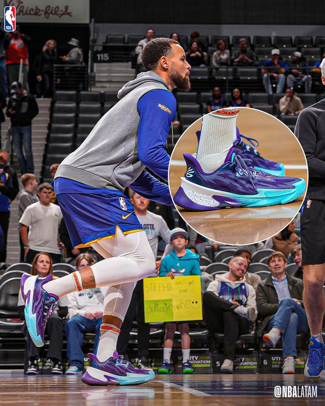 库里2025收官战穿回了UA,上脚了CurrySeries7。
