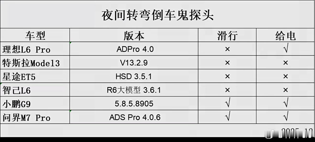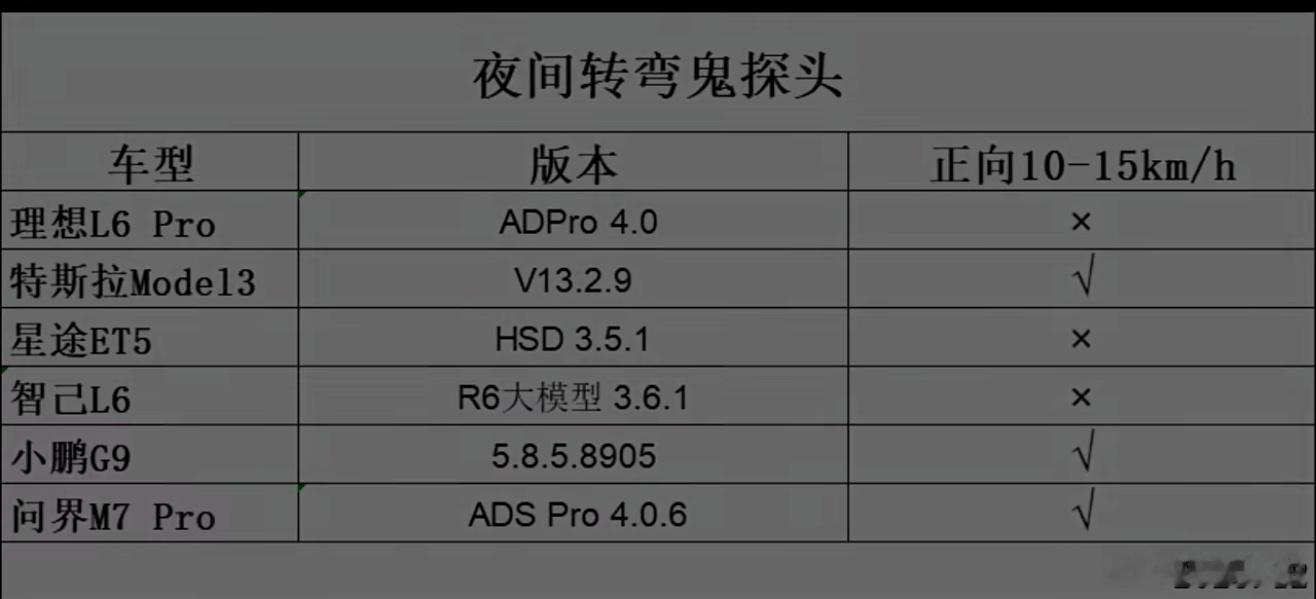 很多车型,功能的名字都差不多,可真正用起来,表现是参差不齐。有媒体做了个热门车型的夜间正、后向弯道人驾鬼探头测试。测试车型包括:问界M7 Pro、理想L6 Pro、智己L6、星途ET5、特斯拉Model 3、小鹏G9、小米YU7、特斯拉Model Y。这个测试比直线鬼探头的工况更复杂,也更接近实际驾驶场景。可以看到几款车里,问界M7Pro、理想L6Pro和小鹏G9在应对这两个复杂驾驶场景时,都有相应的安全解决方案和措施。而且问界M7Pro采用的激光视觉Limera+ADS在决策逻辑、执行顺畅度与安全冗余等方面有更明显的优势。实际上,舱内激光视觉Limera传感器是华为乾崑在2025年4月行业首创、首发的传感器新物种。新系统通过激光雷达和摄像头的物理级融合,进一步提升前向感知能力。根据可靠官方消息,乾崑智驾ADS Pro增强版,城区NCA将在明年Q1全面推送,届时20多款车将搭载升级后的系统。华为乾崑智驾ADSProADSPro舱内激光上限高到离谱舱内激光视觉Limera化身夜神舱内激光视觉Limera“一挑五”胜算几成?