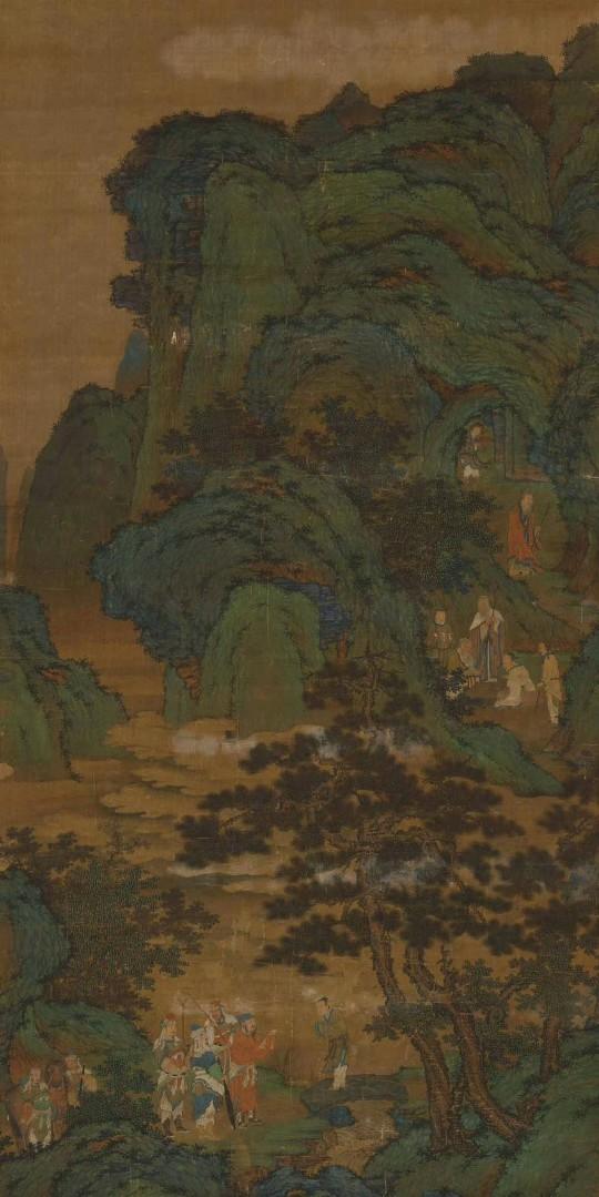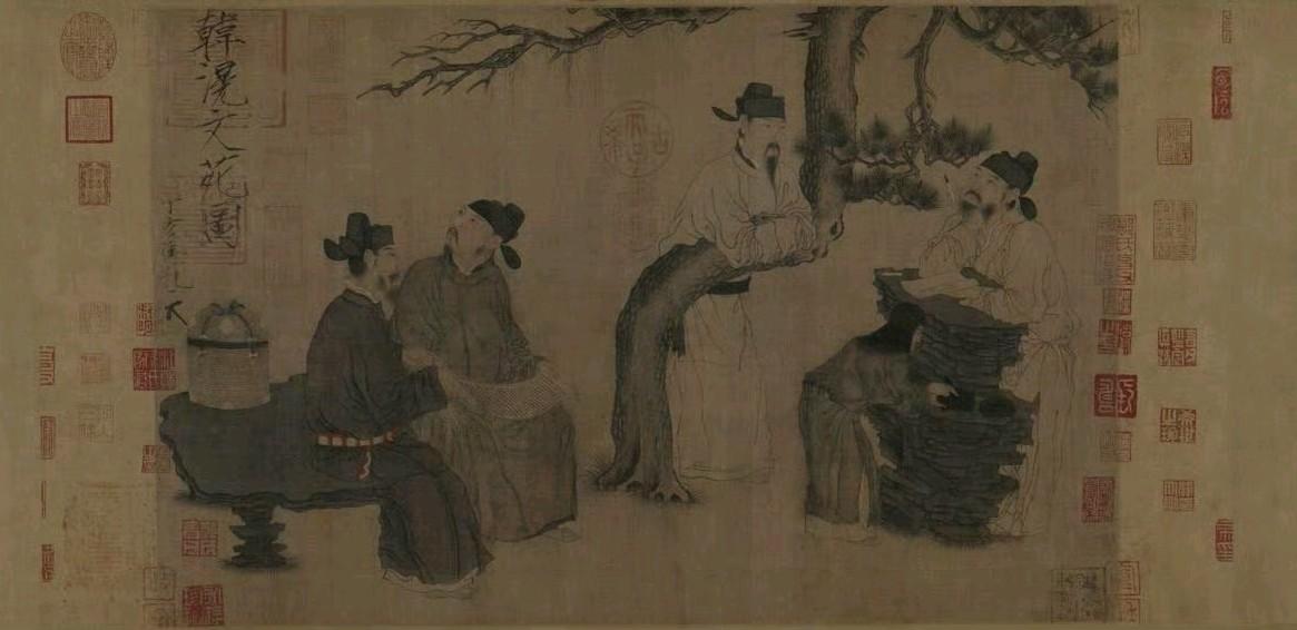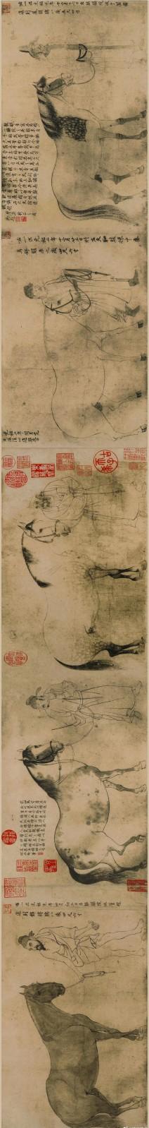 元.佚名《商山四皓图轴》。 清. 李鱓《松石牡丹图立轴》。 五代.周文矩《文苑图》。 石涛《浦汀秋壑图》。 倪瓒 《紫芝山房图》。 清.改琪《庭中雨芭蕉图》。 清.恽寿平《晴川揽胜图》。 宋.李公麟《五马图》。 明 陈淳《茉莉图》。