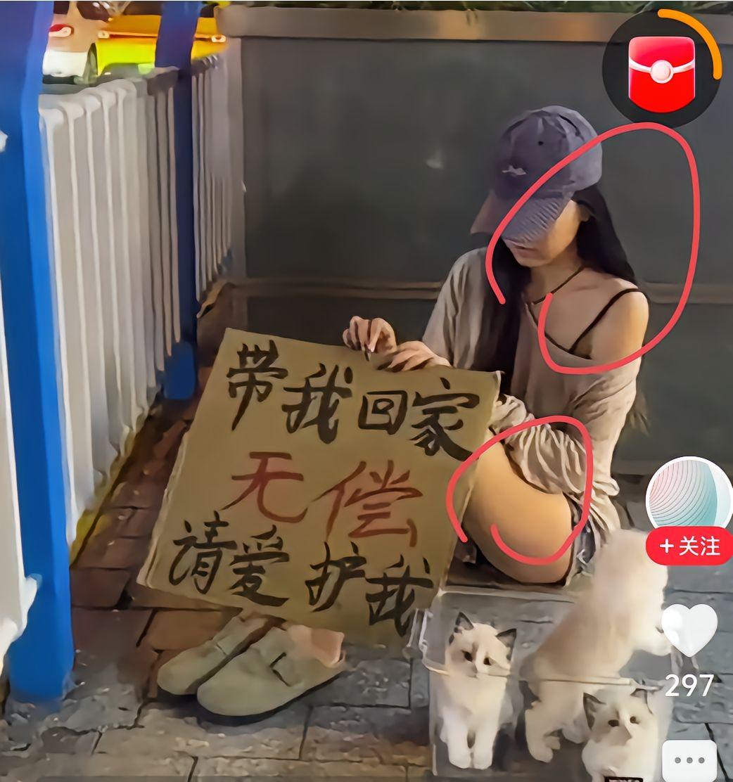 “带我回家,无偿,请爱护我”。漂亮女孩在大街上羞涩的举着牌牌。这不是天上掉馅饼的大好事,美女天降。猪八戒做梦娶媳妇,尽想好事。请注意女孩旁边的三个小猫咪。说的是送猫,不是无偿送美女。仅仅只是送猫而已,不要想入非非。