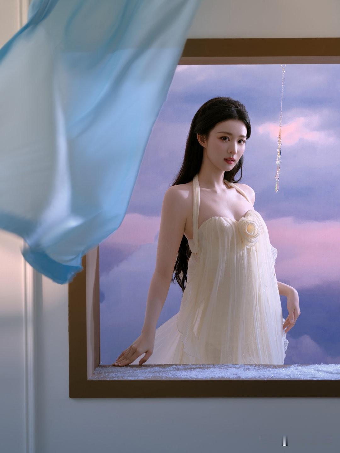 梦幻粉紫色背景下的优雅女神,静谧而美丽。