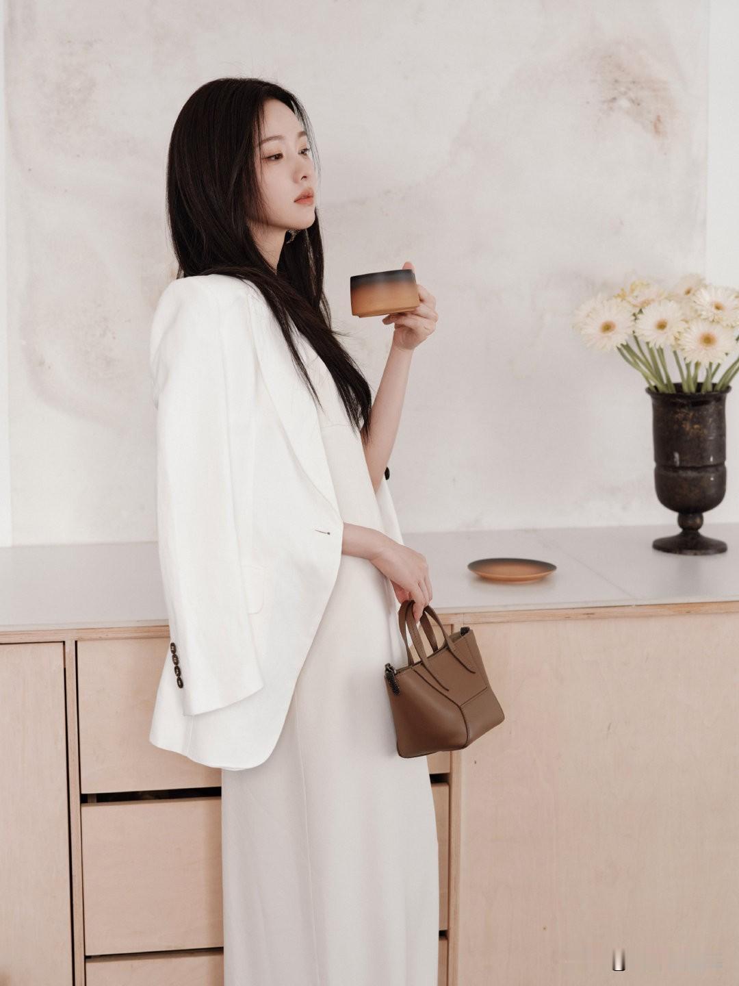 优雅白裙与花艺的完美结合,静谧的办公空间,尽显女性魅力。