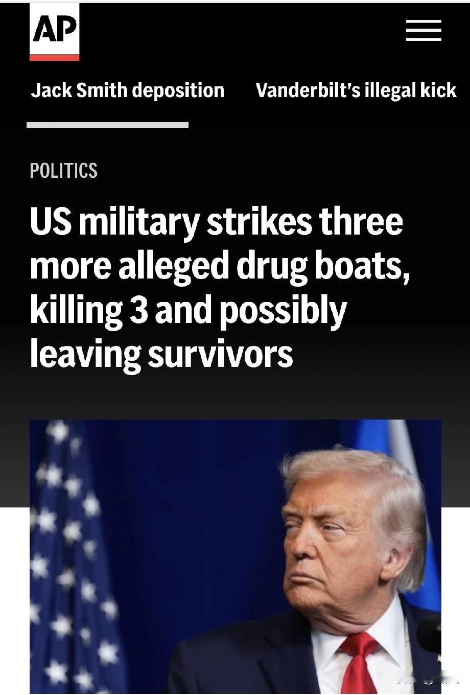美军突袭3艘贩毒船,3人丧命,9月“赶尽杀绝”丑闻未平又添新案🇺🇸 (2026年1月1日美联社/BBC联合报道)新年伊始,加勒比海再燃军事冲突!美国当地时间12月30日,美军南方司令部下令“南方之矛”联合特遣部队,在加勒比海国际水域对3艘涉嫌贩毒的船只发动突袭打击,当场造成3人死亡,另有数人跳海逃生生死未卜,这是美军自9月以来第33次针对“贩毒船”的军事打击,累计致死已超110人! 据美军官方声明披露,此次行动全程充满戏剧性:情报显示3艘目标船只正沿已知贩毒航线航行,且在打击前存在船只间毒品转移行为,美军社交平台发布的视频也拍到三船罕见近距离编队行驶的画面。但诡异的是,美军虽一口咬定对方“涉嫌贩毒”,却未提供任何实质性证据支撑这一核心指控。 突袭打响后,美军火力直指首船,精准打击导致船上3人当场丧命;另外两艘船的船员见状紧急跳海逃离,与船只保持安全距离后,美军才对空船实施击沉作业。事后美军宣称已通知海岸警卫队启动搜救,但对于跳海者是否获救、目前生死状况如何,却只字未提,留下巨大悬念。 值得注意的是,此次行动的指挥官正是深陷舆论漩涡的美国防长赫格塞思——9月初,他曾下令对一艘已被击伤的“贩毒船”发动二次打击,直接炸死两名紧抓船体的幸存者,当时那句“不留一个活口”的狠话引发轩然大波,民主党议员痛批其涉嫌战争罪,国会至今仍在调查此事。如今美军特意强调“先救人再炸船”,明显是想规避“赶尽杀绝”的质疑,但搜救结果的模糊表述,仍让外界对其行动合法性打上问号。 回溯整个事件脉络,这场加勒比海“缉毒战争”早已变味!自2025年9月特朗普政府宣称与贩毒集团进入“武装冲突”状态后,美军南方司令部便在加勒比海和东太平洋展开密集军事打击,“福特”号航母打击群领衔1.5万兵力重兵集结,三个月内击沉30余艘所谓“贩毒船” 。但讽刺的是,美国缉毒署数据显示,委内瑞拉并非美国毒品主要来源地,美军此举更像是借“缉毒”之名,向被指控“ 毒品恐怖主义”的委内瑞拉总统马杜罗施压,甚至CIA上周已对委内瑞拉境内疑似贩毒据点发动无人机打击,军事扩张意图昭然若揭 。 更耐人寻味的是,特朗普政府对这场“海上缉毒”执念极深,即便面临“用大炮打蚊子”的嘲讽和法律层面的多重质疑,仍坚持升级行动——截至目前,美军打击的“贩毒船”多为小型渔船,却动用航母、核潜艇、F-35战机等重型装备,如此兴师动众背后,实则是两党博弈与拉美地缘政治角力的缩影。 如今9月的“二次打击丑闻”尚未尘埃落定,国会调查仍在进行,美军又在加勒比海添上新的死亡记录。跳海者能否获救?美军何时能拿出确凿贩毒证据?这场借“缉毒”之名的军事行动还将持续多久?一系列悬念让加勒比海的波涛之下,暗藏着更复杂的军事与政治漩涡。