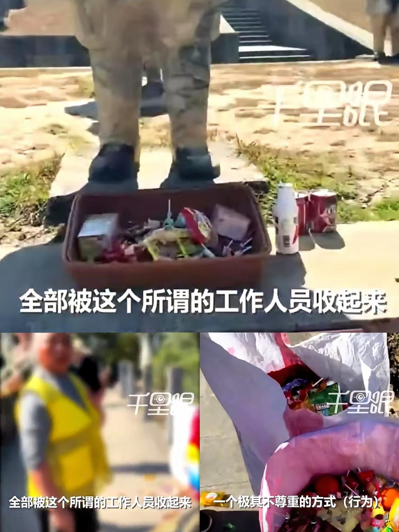 云南保山一男子在烈士陵园祭拜先烈后,还未转身离开,没想到祭品却被工作人员倒入麻袋,这让他十分气愤,认为不应该这样处理。 据男子说,当天他带着祭品来到烈士陵园,拜完后放下祭品还未转身离开,就被工作人员却将他的祭品倒入麻袋中,他认为这样处理很伤人心。 对此,工作人员却表示这是公司的规定,我们不能让祭品摆放在这里影响其他人的扫墓,更不能让它烂掉。 你觉得工作人员做得对吗?