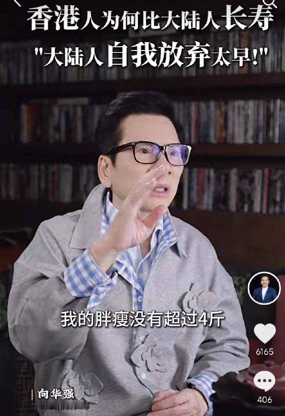 向华强公开自己的长寿秘诀。 向华强:我这几十年来,胖瘦没有超过4斤,因为过了五六斤,我马上少吃,我的警惕性很高,我看到很多大陆人,尤其到了中年,肚子很大就不管了。 最近刷到一段向华强分享养生心得的视频,本来以为又是常见的枸杞泡水、早睡早起那套,没想到听完直接被他的自律程度惊到了。 已经年过七旬的他,精神头比不少年轻人还足,眼神清亮、身形挺拔,完全看不出岁月在他身上留下的沉重痕迹,而他口中的长寿秘诀,说起来简单,却没几个人能真正做到。 普通人别说几十年,就是几个月里体重波动个十斤八斤都是常事,逢年过节胡吃海喝一顿,体重秤上的数字就能往上跳一大截,节后再费九牛二虎之力减肥,循环往复,成了很多人的常态。 只要体重超过五六斤,就马上少吃,一点都不拖沓。 我们身边太多人都是“佛系”对待体重,肚子慢慢变大,腰围悄悄变粗,一开始还会稍微感慨几句, 时间久了就习以为常,觉得“中年发福是正常现象”“大家都这样”,慢慢就放弃了对身材的管理。 很多人不是不知道这样不好,只是总想着“等忙完这阵子就好好调理”,可生活永远有忙不完的事,身材管理也就一直被搁置。 而向华强的厉害之处,就在于他把这种“警惕性”融入了几十年的日常里,变成了一种刻在骨子里的习惯。 不是等到体重飙升了才想起减肥,而是在体重刚有波动苗头的时候就及时干预。 这种未雨绸缪的自律,比事后补救要轻松得多,也有效得多。 他不会因为朋友聚会就放纵自己多吃几口,也不会因为心情好或者心情不好就暴饮暴食,对饮食的把控始终在线。 这种把控不是节食,而是适度的克制,是知道自己该吃多少、该吃什么,在满足口腹之欲和保持健康之间找到平衡。 其实在现在的养生潮流里,很多人都追求各种复杂的养生方法,买昂贵的保健品,报高端的养生课程,却忽略了最基础、也最有效的生活习惯。 身边有个朋友,以前也是典型的中年发福代表,大肚腩很明显,爬几层楼梯就气喘吁吁。 后来关注自己的体重变化,给自己定了个小规矩:只要体重超过平时2斤,就减少晚餐的主食量,多吃蔬菜和蛋白质,并且每天抽半小时散步。 一开始觉得有点难坚持,尤其是看到同事聚餐吃火锅、烧烤的时候,特别想放纵。 现在半年多过去,他的大肚腩明显小了,整个人的精神状态都好了很多。 我们总以为长寿需要很多条件,需要有好的医疗资源,需要有充足的财富,却忽略了最根本的一点:对自己身体的重视和坚持的自律。 关注自己的身体变化,不要等到问题严重了才想起调理;养成良好的生活习惯,并且长期坚持下去。 从现在开始,多关注一下自己的体重变化,少吃一口高热量的食物,多走一步路,都是养生的开始。 就像向华强用几十年的经历告诉我们的那样,健康和长寿,从来都藏在日常的每一个小细节里,藏在那份不放弃、不松懈的警惕和自律里。 对于这件事,您有什么想说的吗?欢迎评论区留言讨论。