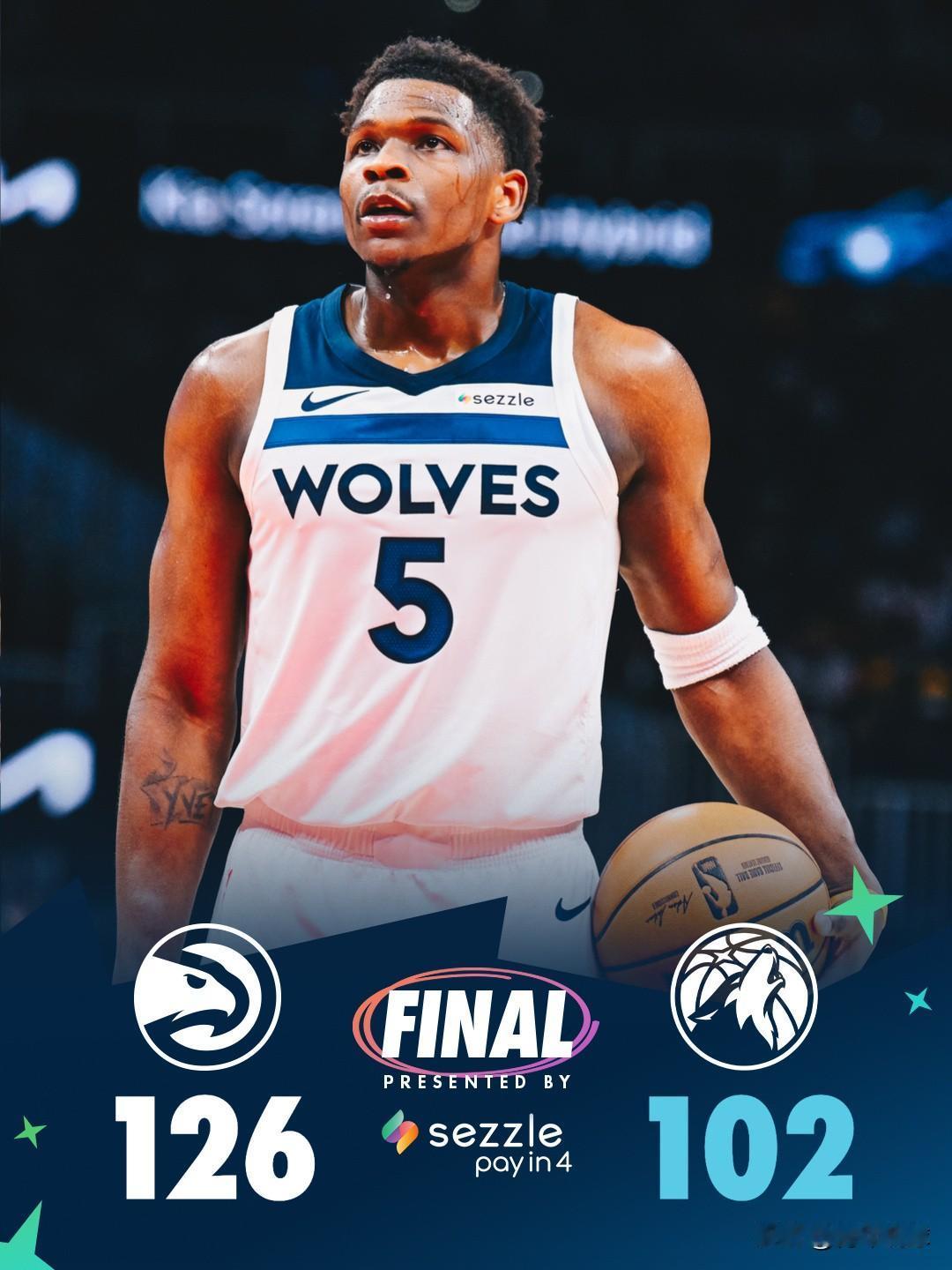 可惜!森林狼错失了反超湖人队的机会啊! 今天凌晨的比赛,森林狼队以102-126惨负老鹰队,帮助后者结束了自己的7连败,真是雪中送炭。本来森林狼队赢下本场比赛后排名将反超湖人队升至西部第五位,错失良机后又落后湖人队0.5个胜场。不得不说,湖人队命真硬啊。 值得一提的是,本场比赛老鹰队约翰逊复出,特雷-杨则继续因伤缺阵,约翰逊一复出就带队赢球,而特雷-杨出战的时候球队一胜难求,这对比太明显了。现在貌似不是老鹰队交易不交易特雷-杨的问题,而是能不能交易出去的问题了。