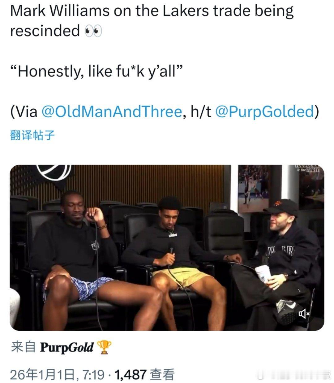 还在记仇😈太阳球员近期参加了一档播客节目,马克-威廉姆斯再次谈到上赛季被湖人“退货”👀“说实话,我当时的想法就是‘去你丫的’(fxxk y'all)。”“我本来很高兴能去洛杉矶,我觉得自己是能帮到他们的一块拼图,尤其是季后赛。所以当他们被淘汰时,我就发了个笑脸的表情🙂你们觉得我好像在幸灾乐祸,像个疯子一样,但我只是在表达我的想法。”