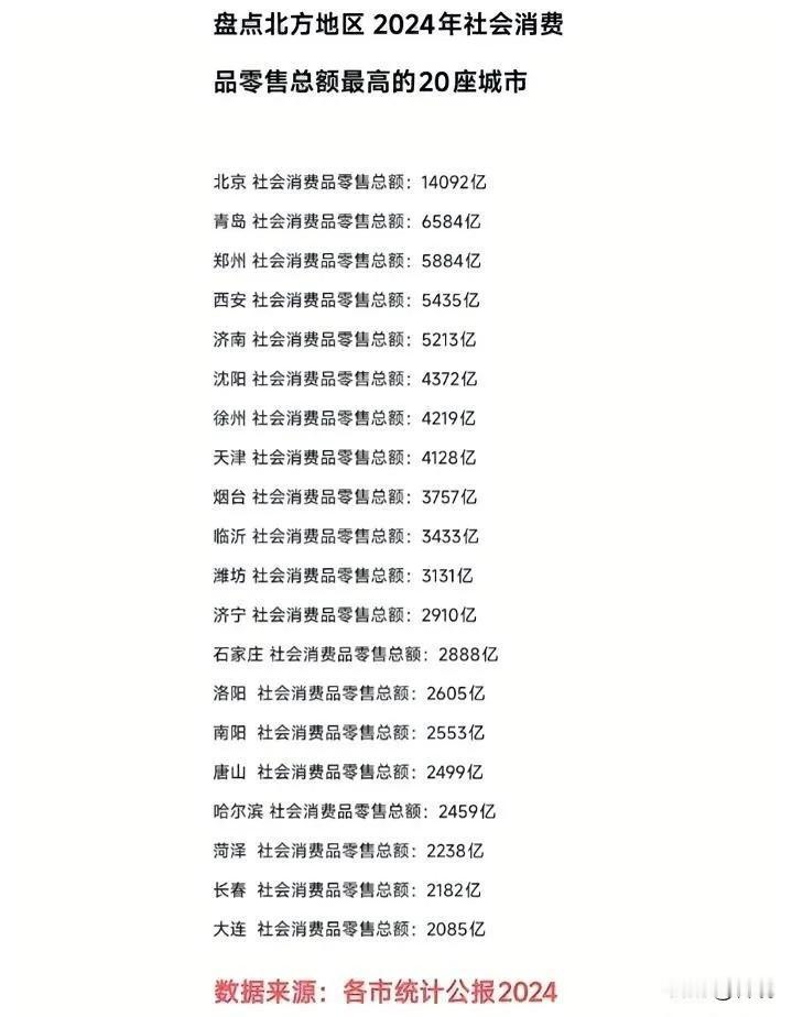 从消费力水平看经济,沈阳排在北方第六,经济发展状况非常优秀。 反映经济状况的指标有很多,很难有一个指标准确反映真实情况,消费力是能够比较准确反映城市经济发展水平的指标之一。 这个道理最简单,钱多才能消费多,经济发展才能钱多,这是再简单不过的道理,所有经济活动和所有经济指标的综合结果都最终会在消费终端进行体现,其它指标吵吵得再凶,消费力不行,只能说明水分太大,比如GDP经常会出现重复计算的情况。 一张全国北方城市消费数据表,北京自然第一,谁敢说北京经济不好?青岛第二,不用合计,它就是北方经济第二强城市,所以沈阳排名北方第六,说明其经济发展水平同样处于领先区位,属于优秀水平。