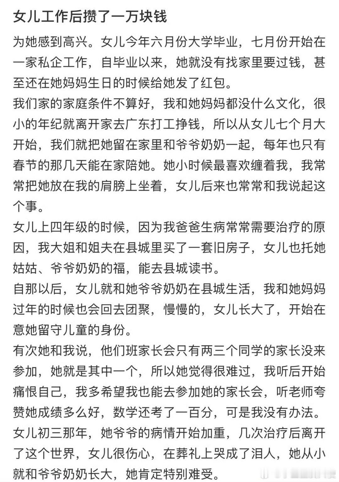 女儿工作后攒了1万块钱