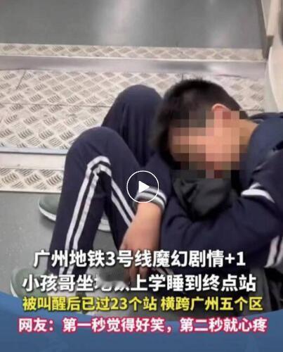 这事儿挺逗的。前几天广州有个小学生,坐地铁3号线,本来是去上学的,结果在车上睡着了。 这一睡可了不得,直接一路睡到了终点站——机场北站。有位好心的汪女士下车时看到他还在车厢过道上睡得正香,就把他叫醒了。一问他才知道,这孩子坐过了整整23个站,从起点一路睡到机场,横跨了广州五个区,在车上睡了一个多小时。汪女士说,当时第一反应觉得有点好笑,但马上又觉得这孩子真不容易。 视频发出来之后,网友都乐了,调侃说“人家是换乘地铁,你这是换乘飞机啊”,说这是“史上最远上学路”。 想想又好笑又有点心疼。小孩哥这睡眠质量是真行,地铁上那么吵也能睡这么死。不过也侧面看出来,现在孩子上学是真累,能困成这样。幸好是遇到了好心人叫醒,这要没人管,不知道要睡到哪儿去了。