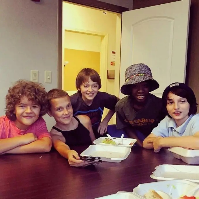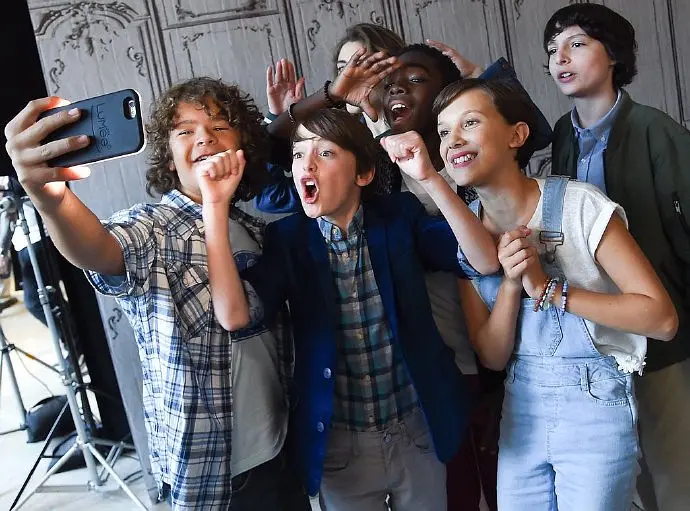 《怪奇物语》主演集体看大结局主创达菲兄弟发文:几周前,我和当时在纽约宣传的剧组成