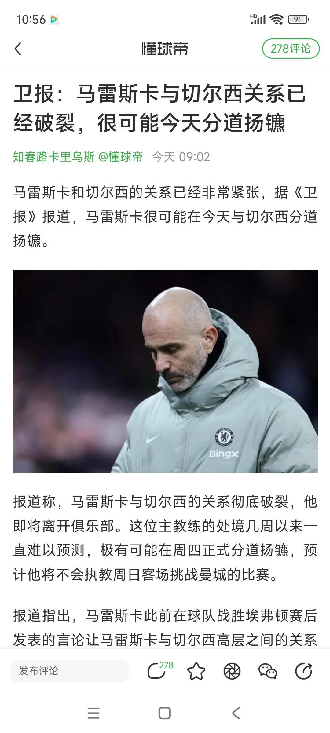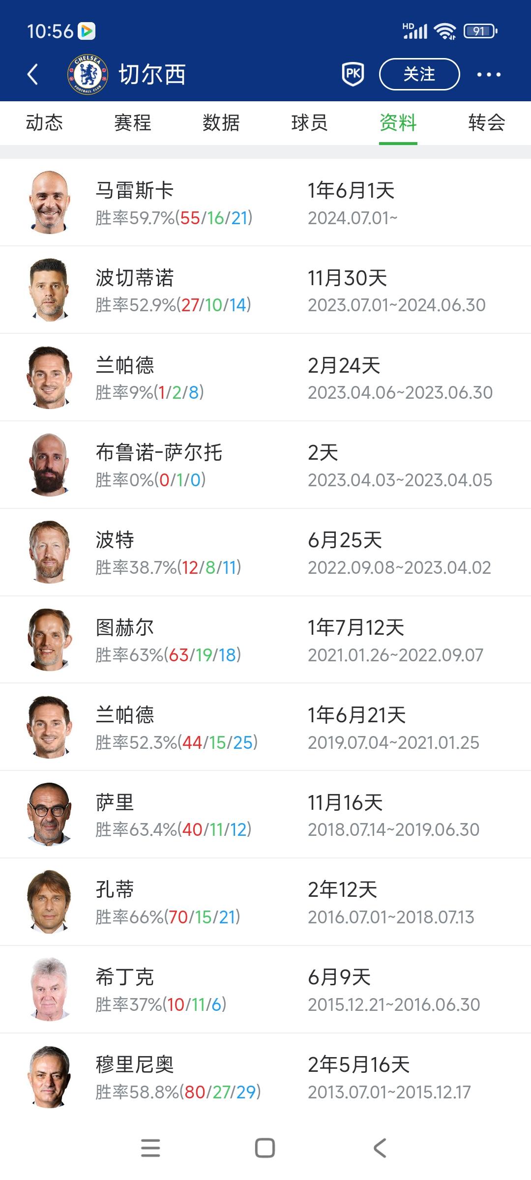 今天英超全是马雷斯卡要下课新闻。 切尔西换教练太频繁了,自从2015年以来每年换一次以上。 马雷斯卡执教超过1年,因为他拿到世俱杯冠军,一度让蓝军看起来有希望。 现在不行了,肯定下课!英超第五保不住。[可怜]