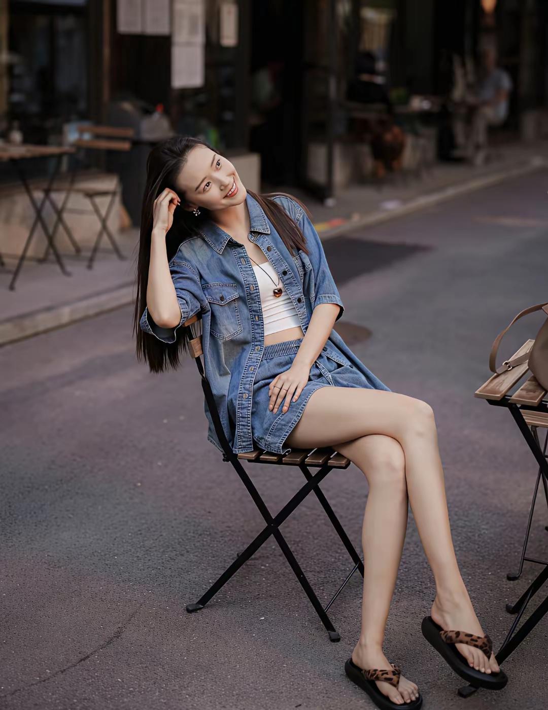 阳光明媚的午后,坐在街边享受悠闲时光🌞👗👠