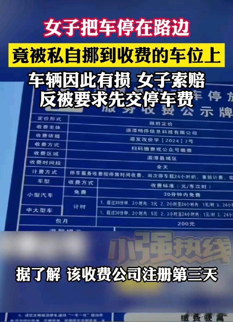 贵州遵义,女子为了省钱,将车停在两收费车位中间,万万没想到,第二天去开时,竟发现车子被工作人员私自挪到了收费车位上,更可气的是,因为对方暴力挪车,车子叶子板和电池底板都被划伤凹陷。女子非常气愤,找到公司讨要说法,谁知,对方不但没道歉,还要求她先交停车费。女子怒了,马上投诉,结果背后的真相让她大吃一惊。 邝女士经常开车出门,平时路边车位都是免费停车,谁知,突然却安装上了智慧感应地锁。 这让车主们很是头疼,本来惠民方便的事情,现在却必须扫码缴费才能用,不然车就没地停。 为了省下这笔停车费,好多市民就琢磨出了个一个省钱的办法,那就是把车停在两个车位的正中间。 这样一来,地锁感应不到车,自然就不会收费了。 邝女士也跟大家想法一样,想着能省一点是一点,也开始这么停车,方便又省钱。 11月17号那天,邝女士又像往常一样,把车稳稳地停在了两个车位中间的安全地带,然后便放心的离开了。 万万没想到,等她第二天再来开车时,瞬间傻眼了,自己的车竟然不在原来的位置,而是被挪到了收费车位上。 原来,车位公司的人见邝女士如此逃避交费,便动用工具,一声不吭,擅自将她的车挪到了收费车位上。 她本想着,挪就挪了吧,大不了交上几块钱停车费,这事儿也就过去了。 可当她绕着车仔细查看时,心里的火“噌”地一下就上来了,只见车子前轮的叶子板有一块明显的凹陷,电池底板也被划出了一道道伤痕。 邝女士接受不了,他们凭什么私自动自己的车?就算要挪车,也该先打个电话通知我一声。 现在倒好,一声不吭就把车弄成这样,这损失可不止几块钱停车费那么简单。 她越想越气,这口气她咽不下,怒气冲冲找到车位公司,要求对方赔偿自己的损失。 可让她没想到的是,公司的工作人员不仅没有一点抱歉的意思,反而还理直气壮地要求她先缴清停车欠费。 这态度简直是不可理喻,我的车子被你们弄坏了,损失这么大,你们还想让我先交停车费?这合理吗? 双方争执不下,邝女士觉得跟他们说不通,一气之下,直接拨打了12345热线和市场监督管理局的电话进行投诉。 很快,市监局给出了答复,他们表示,涉事公司涉嫌使用未经检定合格的计量器具,目前,已经对此事立案调查。 后来邝女士还了解到,这家收费公司注册才第三天,当地就启动了停车位升级改造,而且这家公司的运营权来源信息竟然一直都没有公开。 这让邝女士心里又多了几分疑惑,她希望相关部门能尽快查清真相,还自己一个公道,也让其他市民能放心停车。 从法律角度来看,邝女士是否有权要求公司赔偿? 《民法典》第1165条规定:行为人因过错侵害他人民事权益造成损害的,应当承担侵权责任。 车位公司非法定执法主体,无权在未获邝女士同意且未履行通知义务的情况下,擅自挪动其车辆。 即便邝女士存在不规范停车行为,该公司也只能通过合法途径处理,无权自行实施挪车这一侵权行为。 公司挪车行为存在多重过错:一是程序过错,未事先有效通知邝女士,剥夺其自行挪车的权利。 二是操作过错,挪车过程中未采取合理保护措施,导致车辆叶子板凹陷、电池底板划伤等损害。 三是目的过错,挪车并非为了维护公共秩序,而是迫使邝女士缴费,具有明显的恶意牟利倾向。 车辆损害与公司的挪车行为存在直接因果关系,公司应承担车辆维修费用等全部损失,且不得将缴费作为赔偿的前置条件。