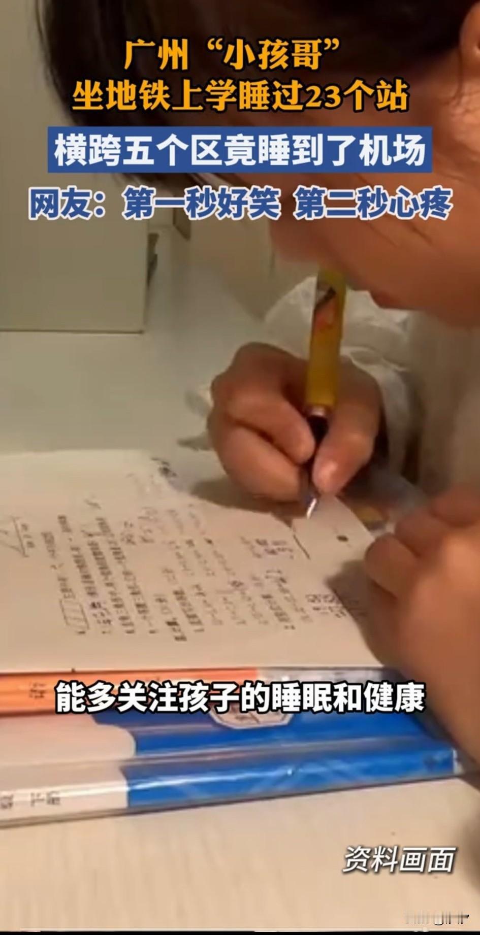 广州小孩哥一口气睡过了23个站, 肯定是迟到的, 市民汪小姐坐地铁3号线赶飞机, 路上看到有一个小学生坐在地上睡觉, 感觉他睡了一个小时, 直到到达机场他才叫醒了小孩哥, 还问小孩哥你是上学还是去坐飞机? 小孩哥表示自己是去上学, 还问小孩哥本来是想在哪个地铁站下? 小黑哥表示是在汉溪长隆站下, 汪小姐表示你坐到终点站了, 那你应该去对面坐回去, 小孩哥有些无奈的走了, 这下是真的完了, 这个小孩哥获得全网发放的免迟到券, 这下应该不用向老师解释为何迟到了吧,毕竟全网都可以向老师作证, 学小学生就是地铁坐过站,迟到2小时的,绝对不是睡过头迟到的, 请老师务必相信小学生的迟到理由, 网友表示上一秒都好笑,下一秒觉得心疼。还有网友对新闻主播提出了批评,什么叫家长多关注一下学生的睡眠和健康,应该让学校减少作业负担! 也有网友表示自己的孩子每次写作业能写到12点,感觉学校作业太多! 看来如今这种把孩子所有的事情都推给家长的做法已经有人反对了, 很多东西都是可以在学校完成的, 真的没有必要推给家长, 现在的家长都是8090后, 他们工作上非常的辛苦, 可没有时间给孩子批改作业,辅导作业,如果这些事情家长都做了, 那还要学校老师干什么? 记得小时候作业基本上都是在学校写完的,对于不会的老师也会非常耐心的讲解,但是现在的小学生都很怕老师, 不会也不敢问导致在家写作业写到凌晨12点,每天睡眠时间都不够,关键作业还要家长批改美其名曰关注孩子的学习,导致很多家长抱怨天天需要关注自己孩子的班级群消息,生怕错过老师的指示。 这名广州的小学生一看就是熬夜写作业导致睡眠不足,教育部门真的应该关注小学生的身心健康了,不能让沉重的学业负担压垮祖国未来的花朵! 谁的责任应该谁来承担,不能将所有的问题都推给孩子的父母! 大家对于广州小学生一口气睡过23个地铁站,部分新闻主播却呼吁家长应该多关注孩子的睡眠和健康。 大家对于这样的言论怎么看? 广州身边事 家有小学生 小孩坐地铁 地铁小孩 小孩哥超神瞬间 广州地铁男孩