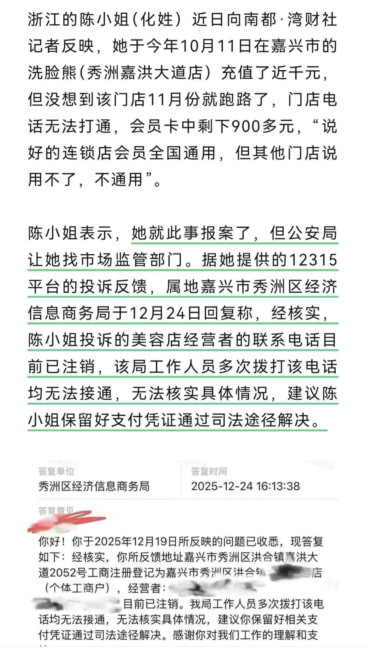 知名洗脸品牌“洗脸猫”关门跑路,会员去维权,帽子叔叔说去找市监局,市监局说他们也联系不上了,自己保留证据,通过司法途径去解决吧。 看到了吧,为什么会有这么多卷款跑路的,不就是没人管吗?老百姓的维权成本太高了吗?这种卷款跑路的,本身就属于诈骗行为,竟然没人管。所以,现在才会出现“职业闭店人”这样一种奇葩的职业,专门接盘一些经营不善,快倒闭的门店,然后圈一波会员费,就卷款跑路。 好吧,这是一个赚钱门路,反正没人管,以后会越来越多。不过,作为一个刚刚在一家蛋糕店充值,对方就关门跑路的受害者,我只想对普通人说,以后任何门店都不要充值,你看中它的优惠,它看中的是你的本金。 唉,该管的没人管,不该管的倒是管的挺多,给微信好友发个不雅图片,视频,都要管,都算违法了。