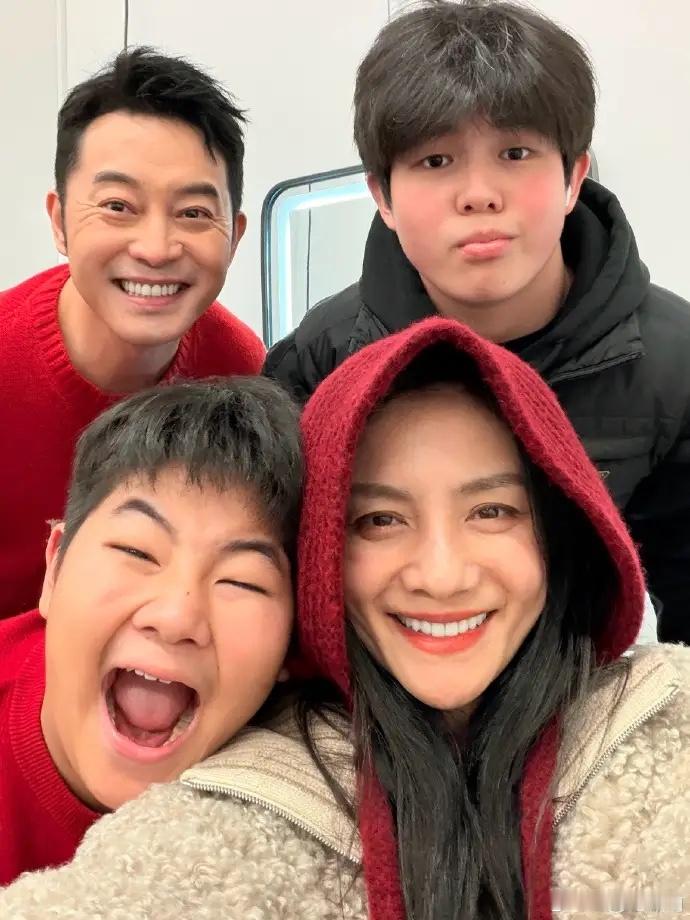 胡可晒全家福的照片以及他们家的爱犬的照片,庆贺元旦的到来,迎接2026年的到来!