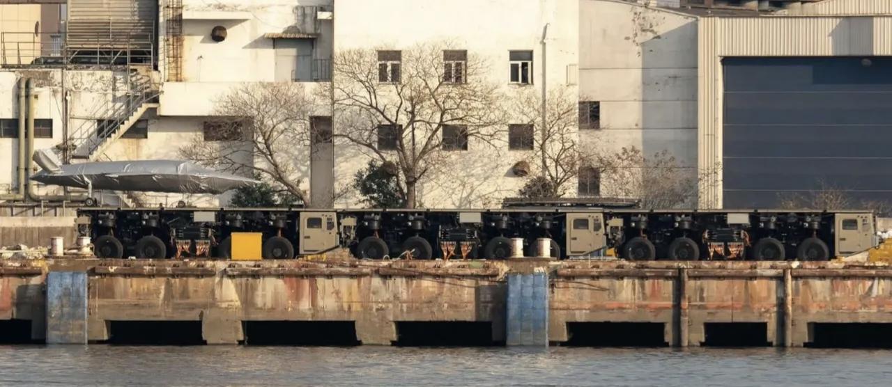 就是这种卡车式电磁弹射器!在陆地上可以弹射大型无人机,解决在没有跑道的地方弹射无人机的问题。为远征作战、野战提供靠更近前线的无人机支援。 吊装到货轮甲板上,马上变成电弹无人机航母,与辅助巡洋舰组成无人机航母编队。